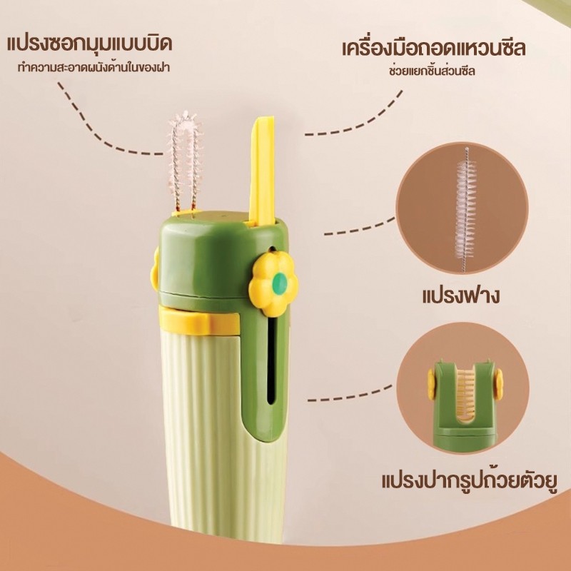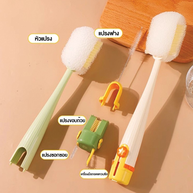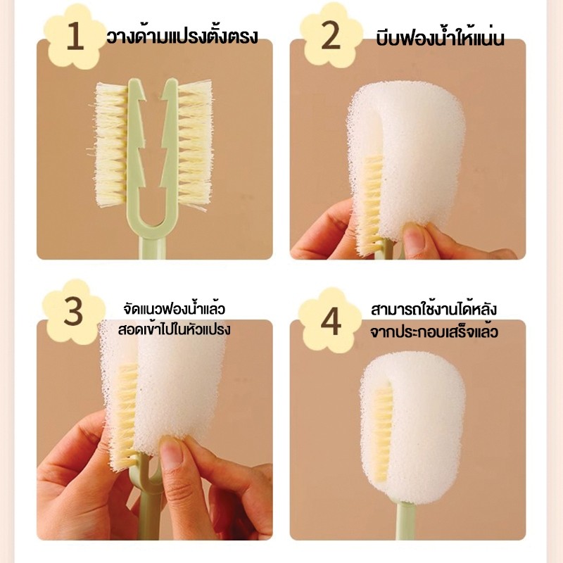 PANDA แปรงล้างขวด แปรงล้างแก้ว หัวแปรง2in1 แก้วทำความสะอาด