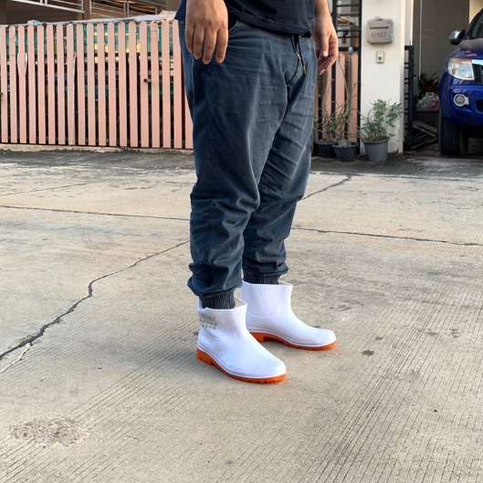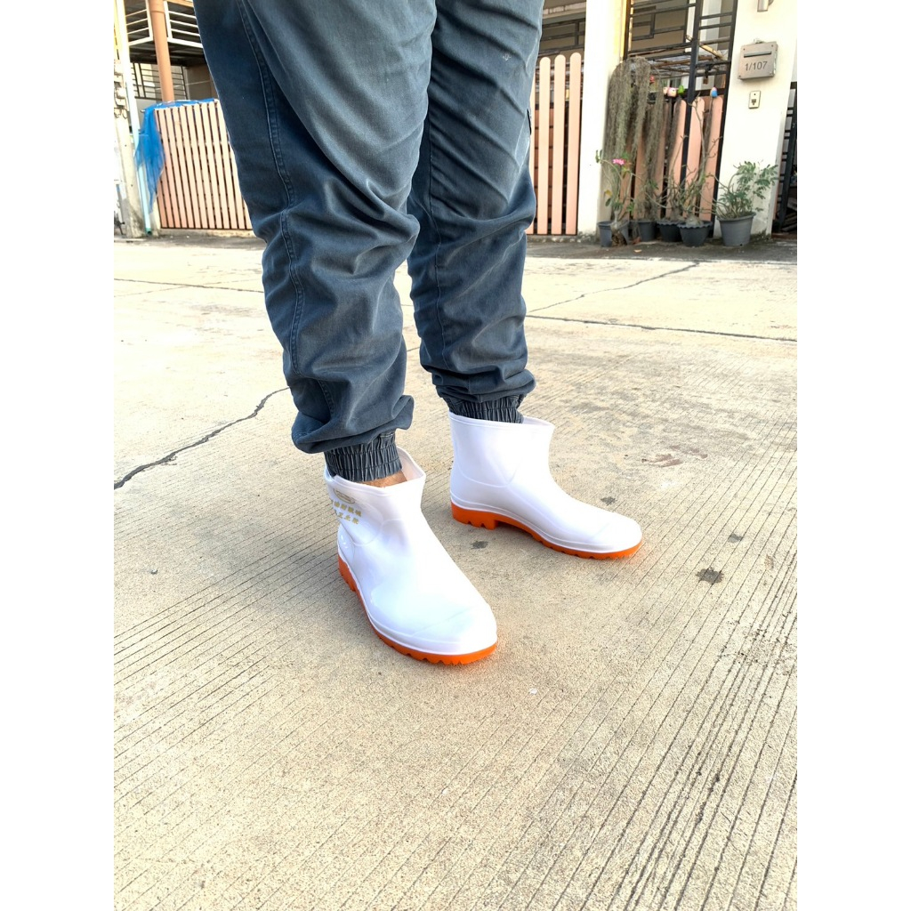 รองเท้าบูท สั้น สีขาว กันน้ำ ลุยน้ำขัง เดินลุยสวน