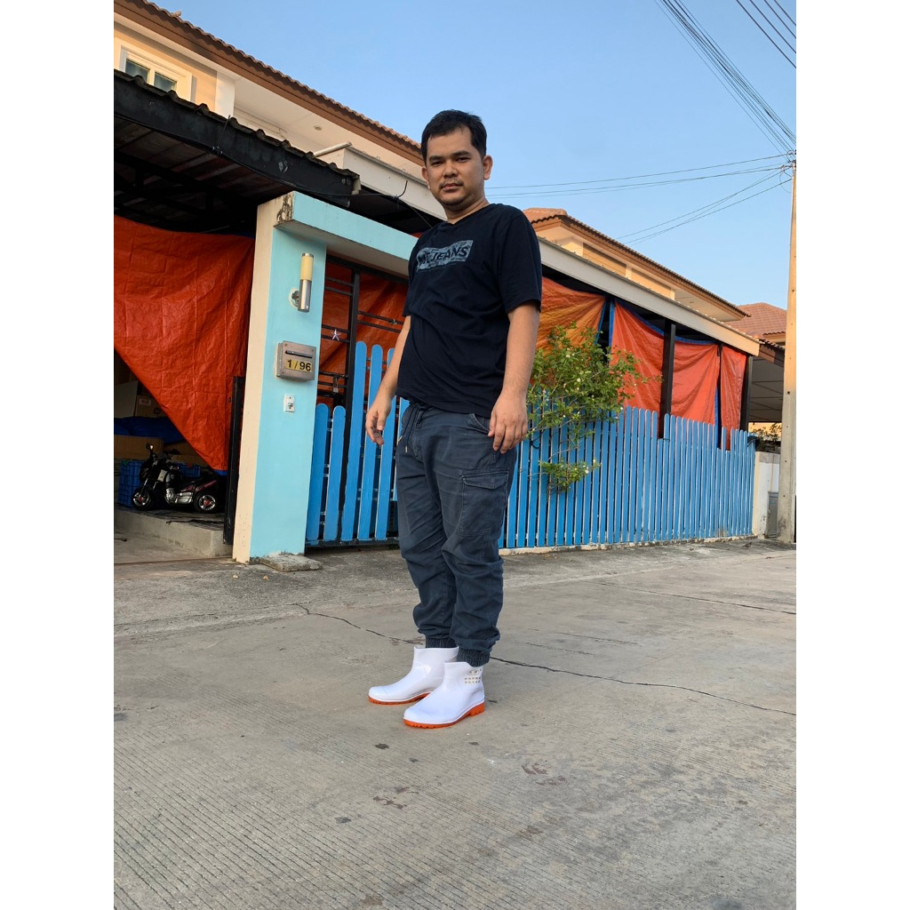 รองเท้าบูท pvc สั้น สีขาว กันน้ำ ลุยน้ำขัง เดินลุยสวน