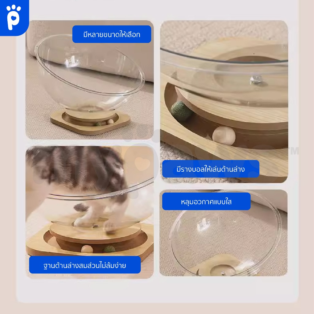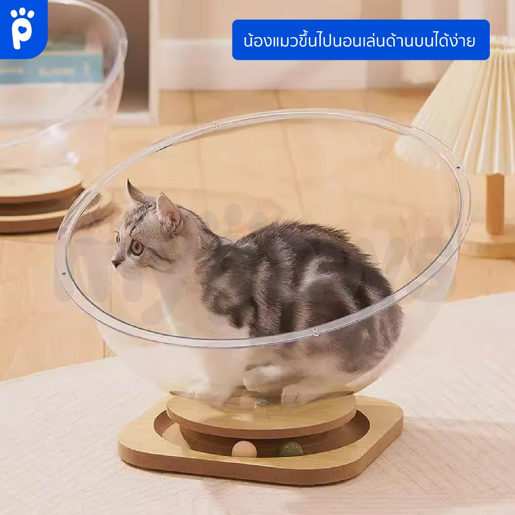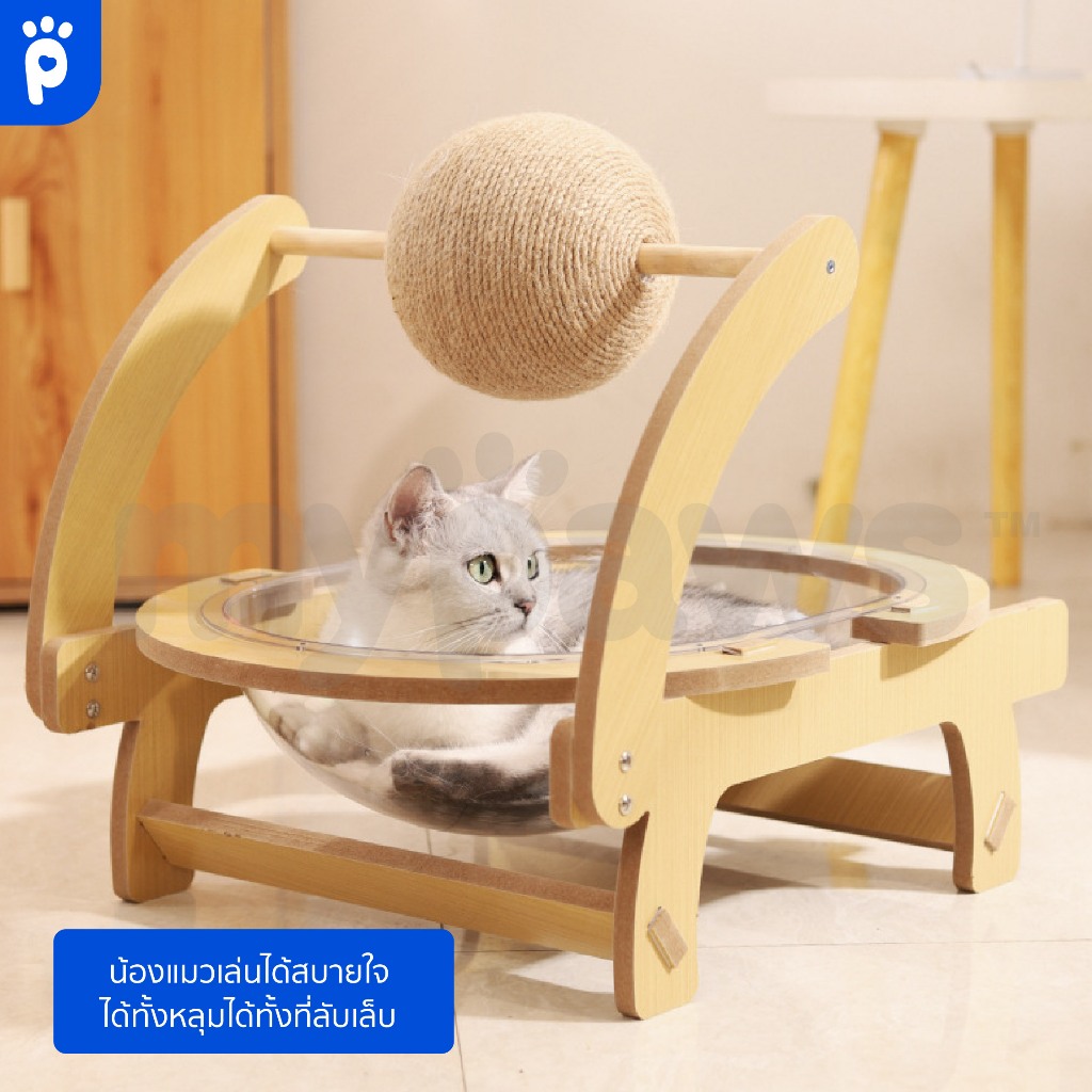 [?PAYDAY ลดสูงสุด 150.-]My Paws หลุมแมว อะคริลิค พร้อมรางบอลแบบรางไม้ เป็นได้ทั้งที่นอนและของเล่นในตัว