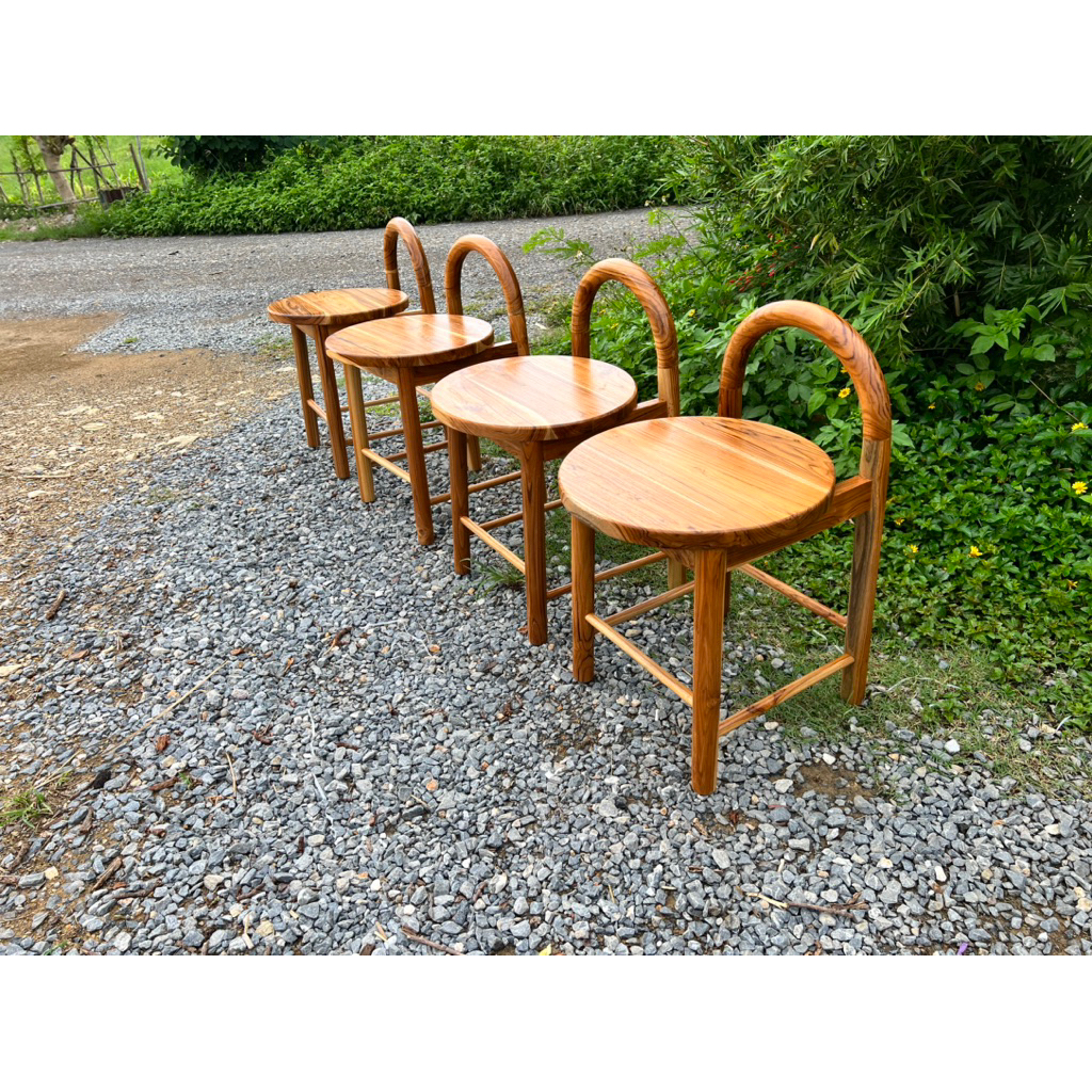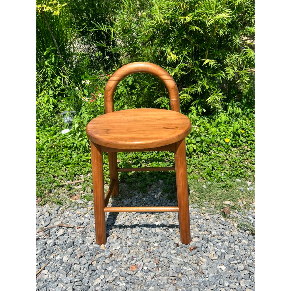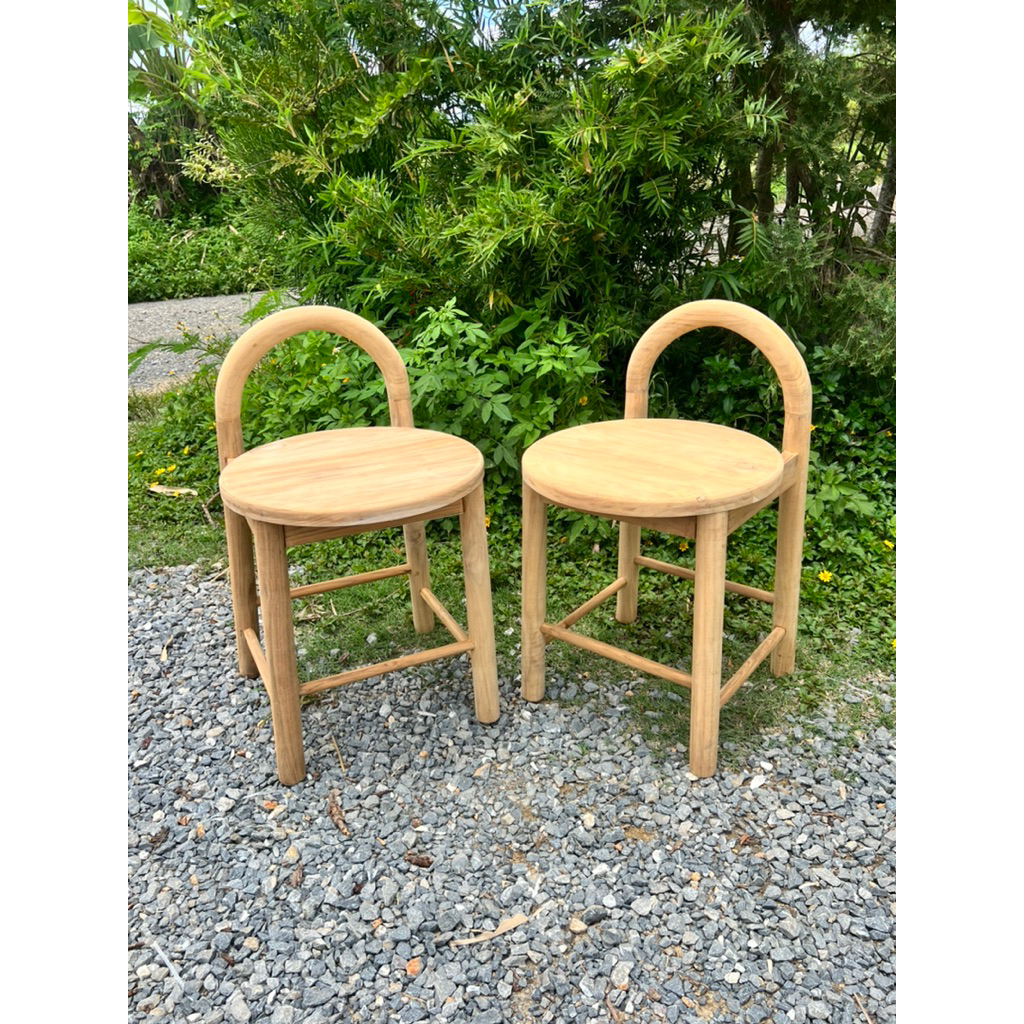 เก้าอี้สตูล ไม้สัก แบบมินิมอล พนักพิงโค้ง ขากลึงกลม