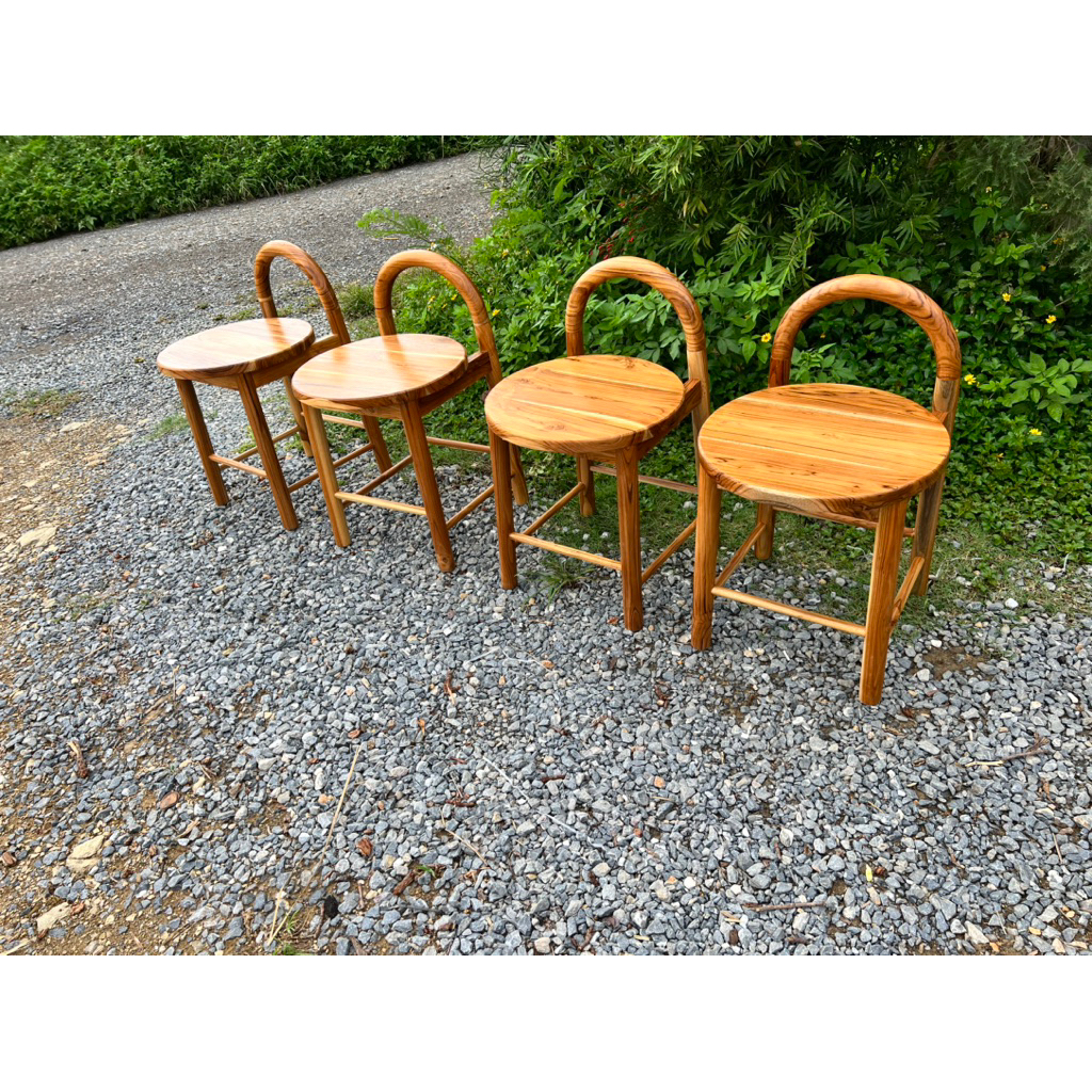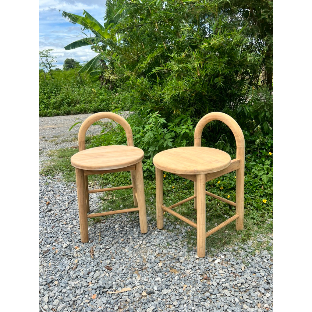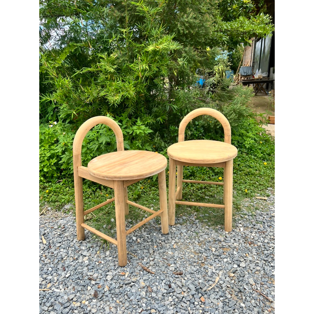 เก้าอี้สตูล ไม้สัก แบบมินิมอล พนักพิงโค้ง ขากลึงกลม