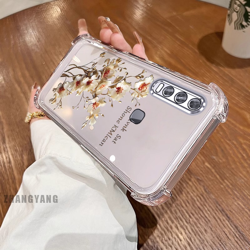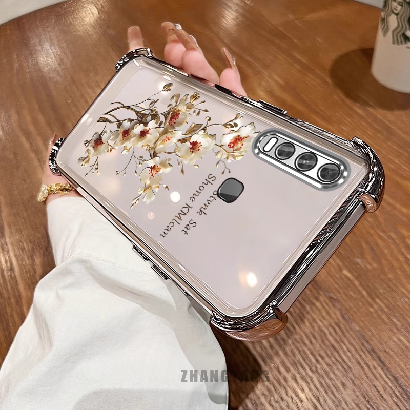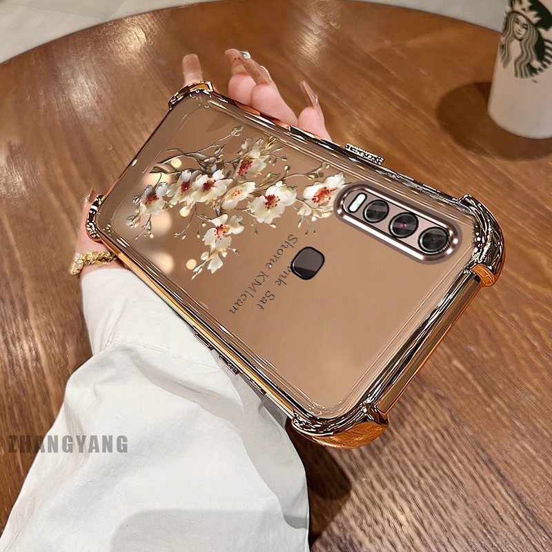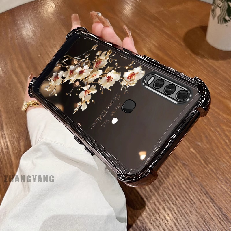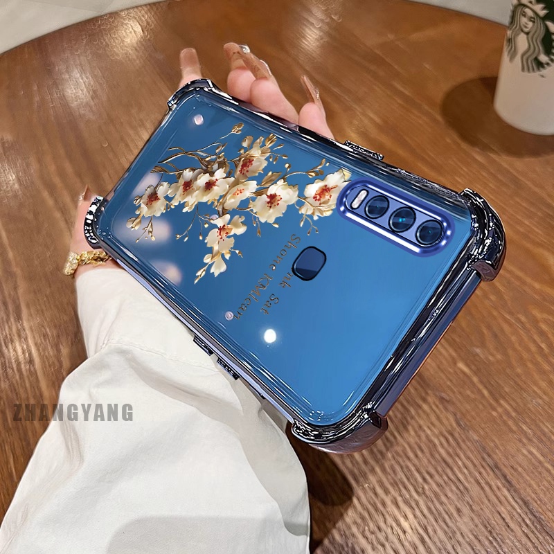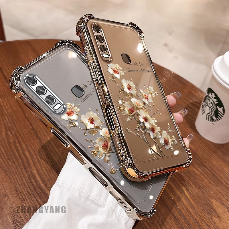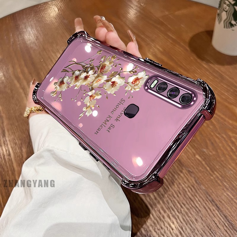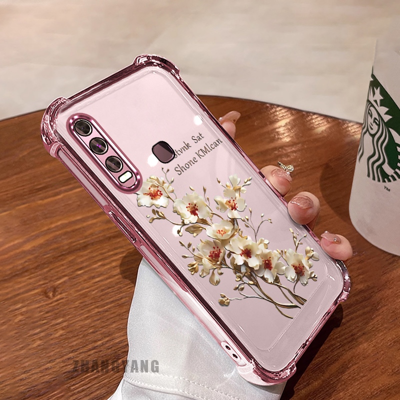 สําหรับ vivo y50 y30i y30 สี่มุม anti drop electroplated เคสโทรศัพท์ความงามต้นไม้สาขาดอกไม้ออกแบบใหม่ TPU ซิลิโคน soft case