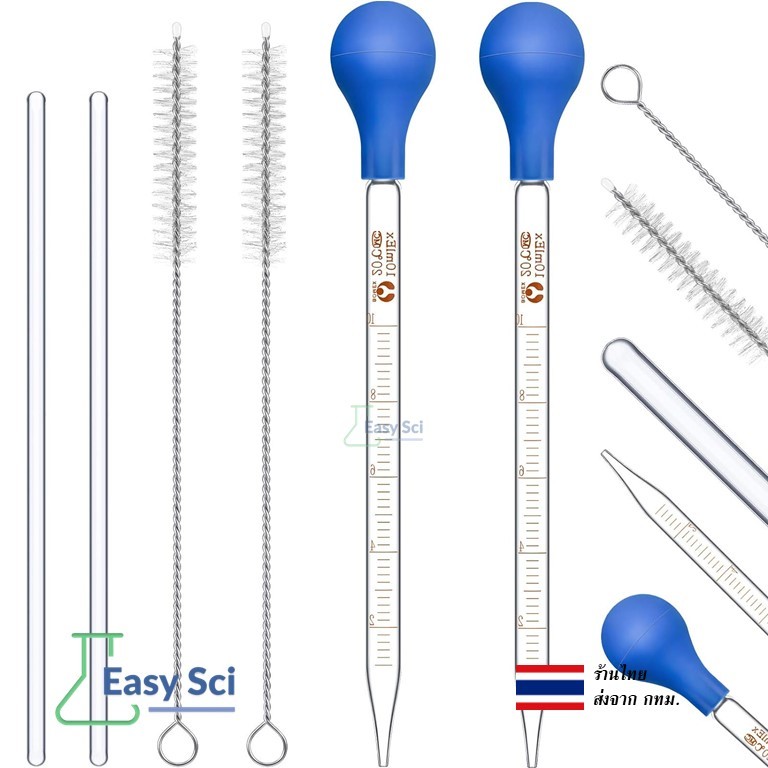 หลอดหยดแก้ว หลอดหยดแบบมีสเกล หลอดหยดสาร 1,2,3,5,10 ml หลอดหยดอาหาร หลอดหยอดทนความร้อน 1/2/3/5/10ml Glass Pipette