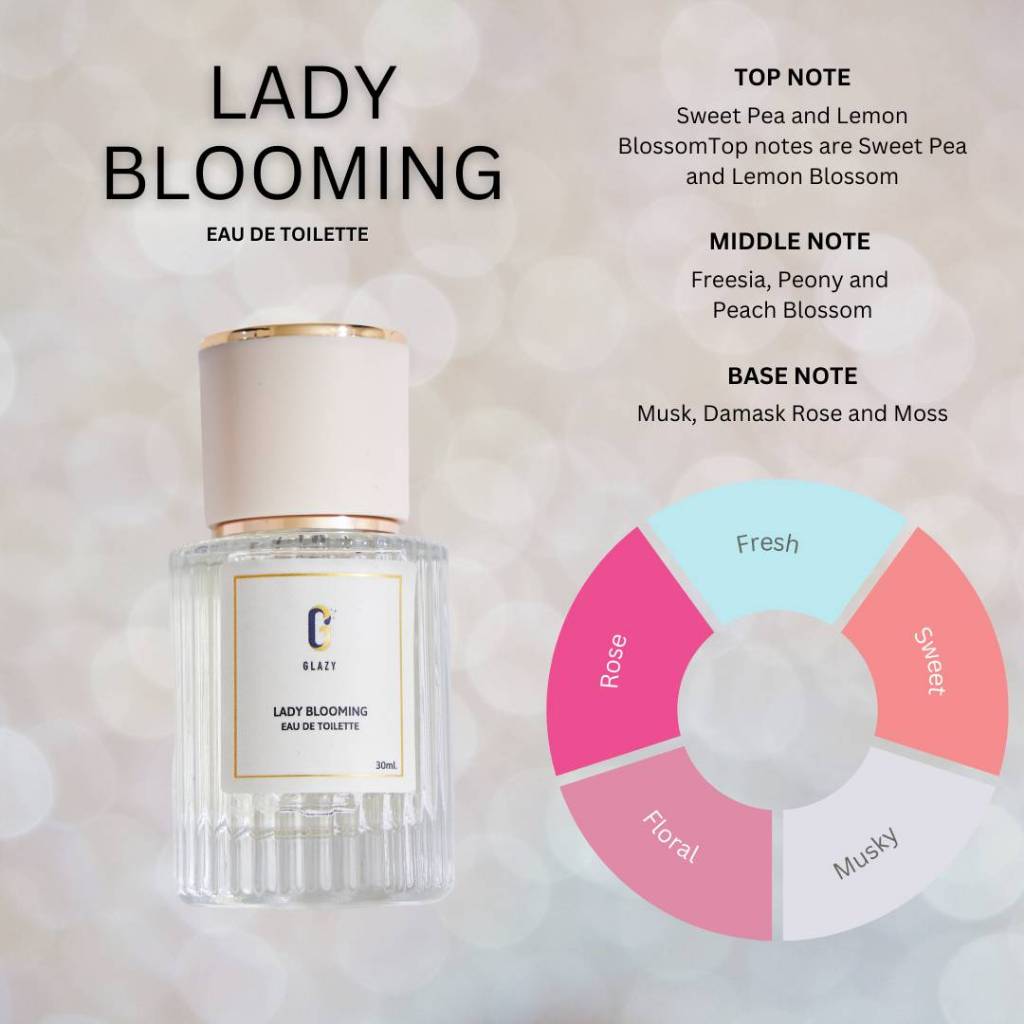 Lady Blooming - น้ำหอมที่ให้กลิ่นสดชื่น เหมาะสำหรับผู้หญิงมีต้องการความสดใส ผ่อนคลาย ความอิสระ การเป็นตัวของตัวเองได้อย่างเต็มที่ น้ำหอ