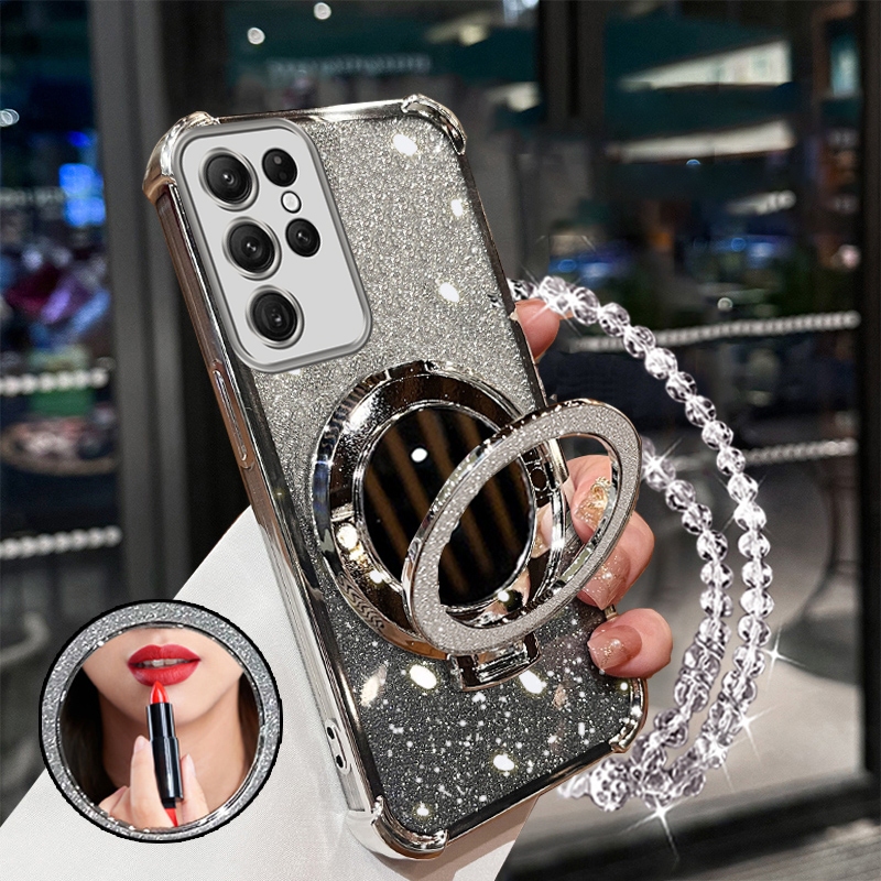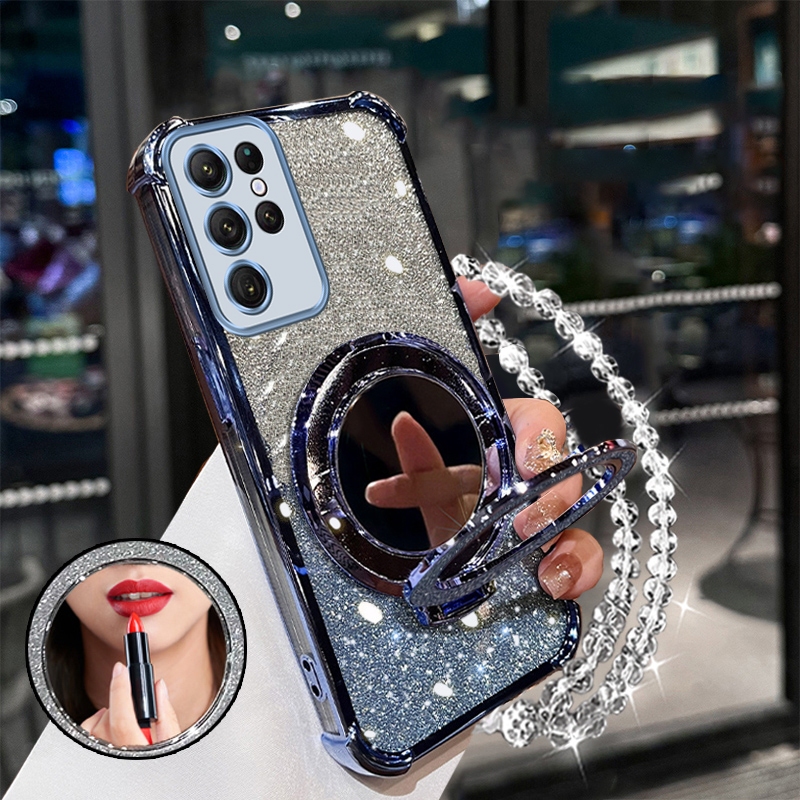 FOR เคส [3 in 1] เคสสำหรับ SAMSUNG S20 ultra s20 plus s20 Fe เคสโทรศัพท์ซัมซุง s20 เคสนุ่มซิลิโคนกันกระแทก ดีไซน์ใหม่สวยงาม มีเชือกคล้อง กระจกแต่งหน้าพร้อมที่ยึด SJSFHZJ01