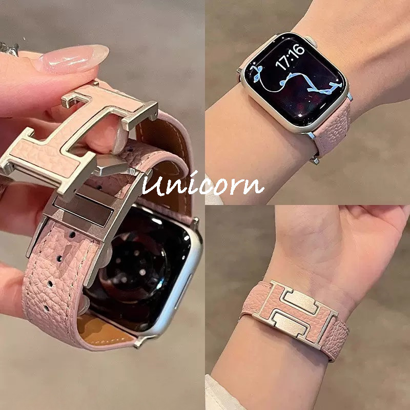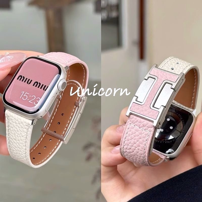 สายหนังแท้สําหรับ Apple Watch Band 42 มม.46 มม.44 มม.45 มม.40 41 มม.49 มม.Correa สร้อยข้อมือสําหรับ iWatch series 10 9 7 8 6 5 se ultra