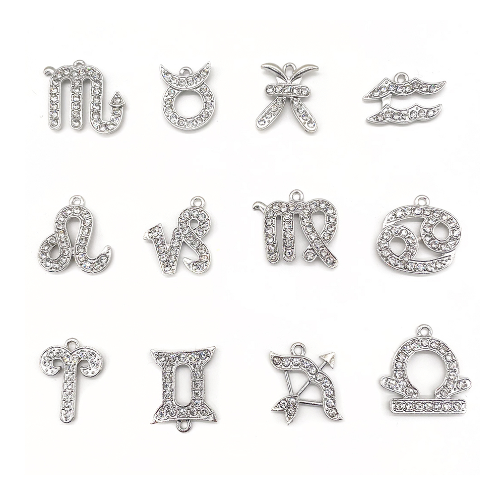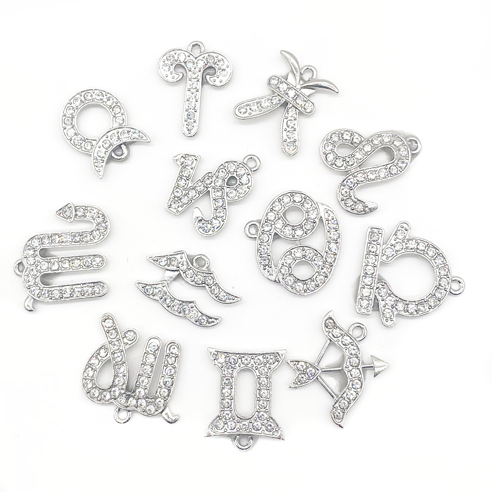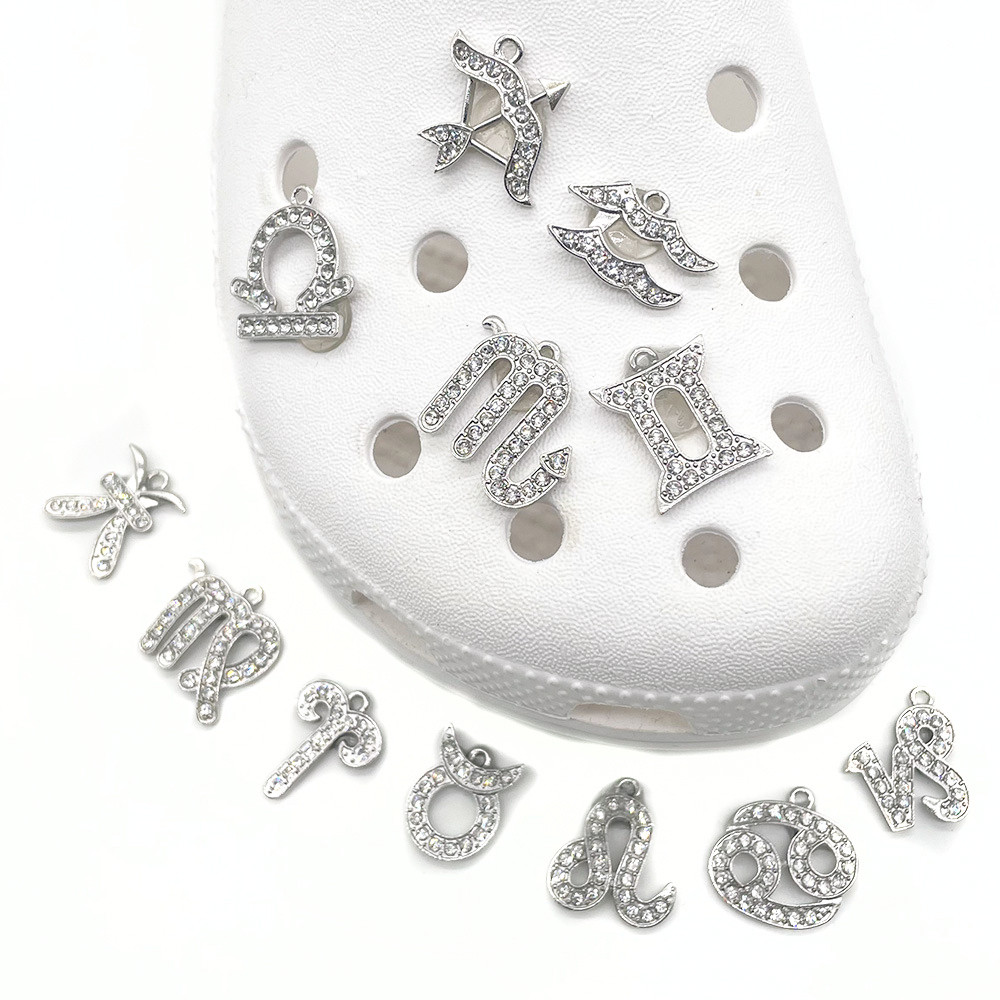 ตัวติดรองเท้า อักษรเพชรสีเงินคริสตัล กลุ่มดาวจักรราศี Zodiac สำหรับตกแต่งรองเท้าหัวโต ทุกรุ่นติดง่าย