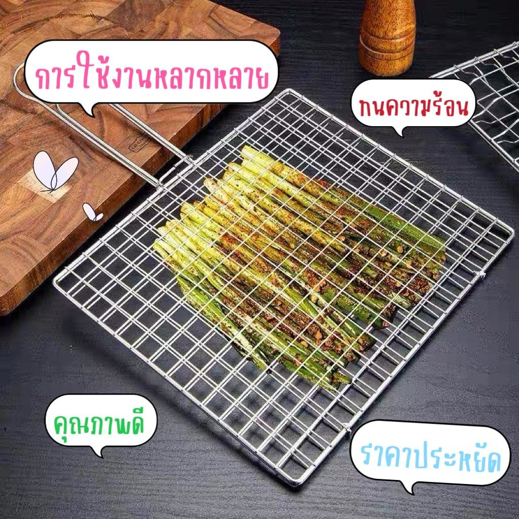 ตะแกรงปิ้งย่าง ปิ่งปลา ปู หอย ตะแกรงสแตนเลส สำหรับปิ้งย่างอาหารแบบมีด้ามจับ PS1