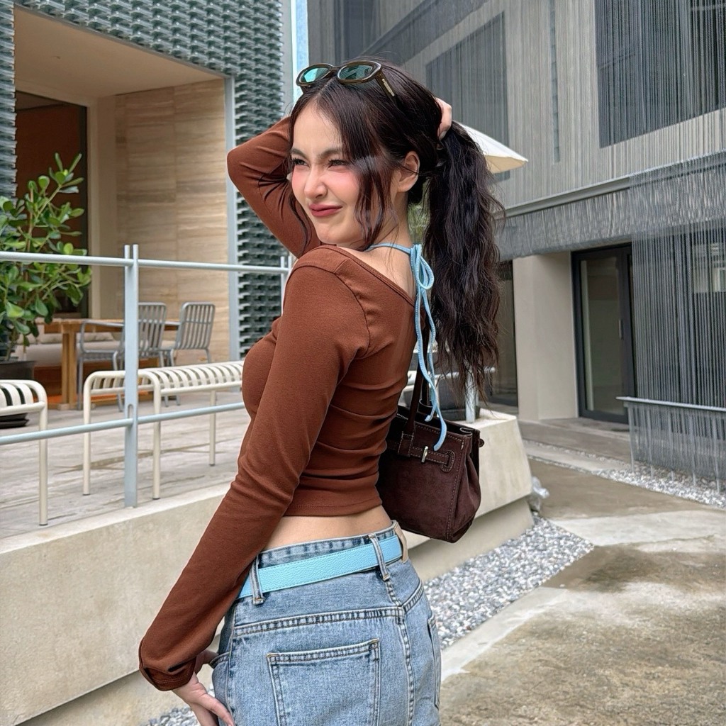 เสื้อแขนยาวเลเยอร์ผูกคอ บอกเลยว่าไม่ใช่แค่เสื้อแค่ยาวทั่วไปเพราะดีไซน์ช่วงอกให้ดูไม่ตันช่วยพรางให้ดูเพรียวและใส่ดีเทลลูกเล่นคล้ายสายบิกินี่เลเยอร์สุดแซ่บ! สายคล้องคอสามารถผูกปรับระดับได้เองไม่ต้องกลัวรั้ง ใช้