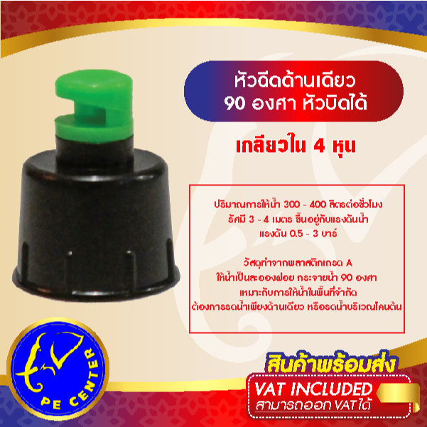 หัวฉีดด้านเดียว 90 องศา รูน้ำ 4 มิล สีเขียว หัวมือบิดได้ เกลียวใน ขนาด 4 หุน สปริงเกอร์ ระบบน้ำ รดน้ำต้นไม้