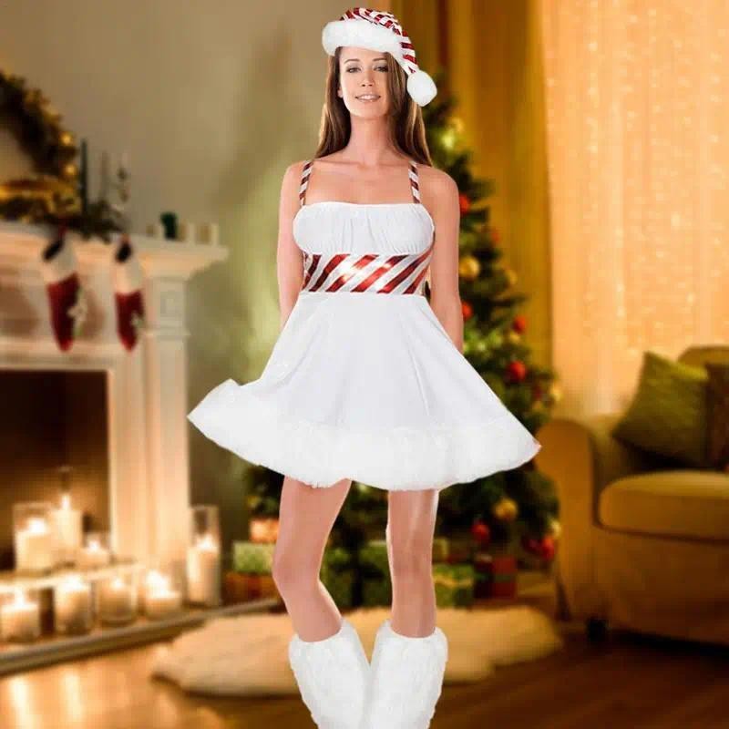 ผู้หญิงคริสต์มาสเครื่องแต่งกายชุดนางซานตาคลอสตูเจ้าหญิงพรรคชุดหมวกฟุตครอบคลุมเทศกาลเอลฟ์เครื่องแต่งกายเทศกาล