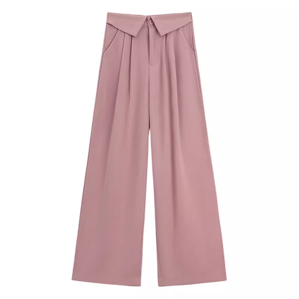 กางเกงขายาว เอวสูง สไตล์เกาหลี,กางเกงทำงาน ผู้หญิง ทรงเบสิก สไตล์ลำลอง
