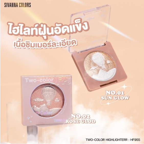 (1ชิ้น) HF955 SIVANNA COLORS Two Color Highlighter ไฮไลท์ 2 เฉด ผิวโกลว์สวย