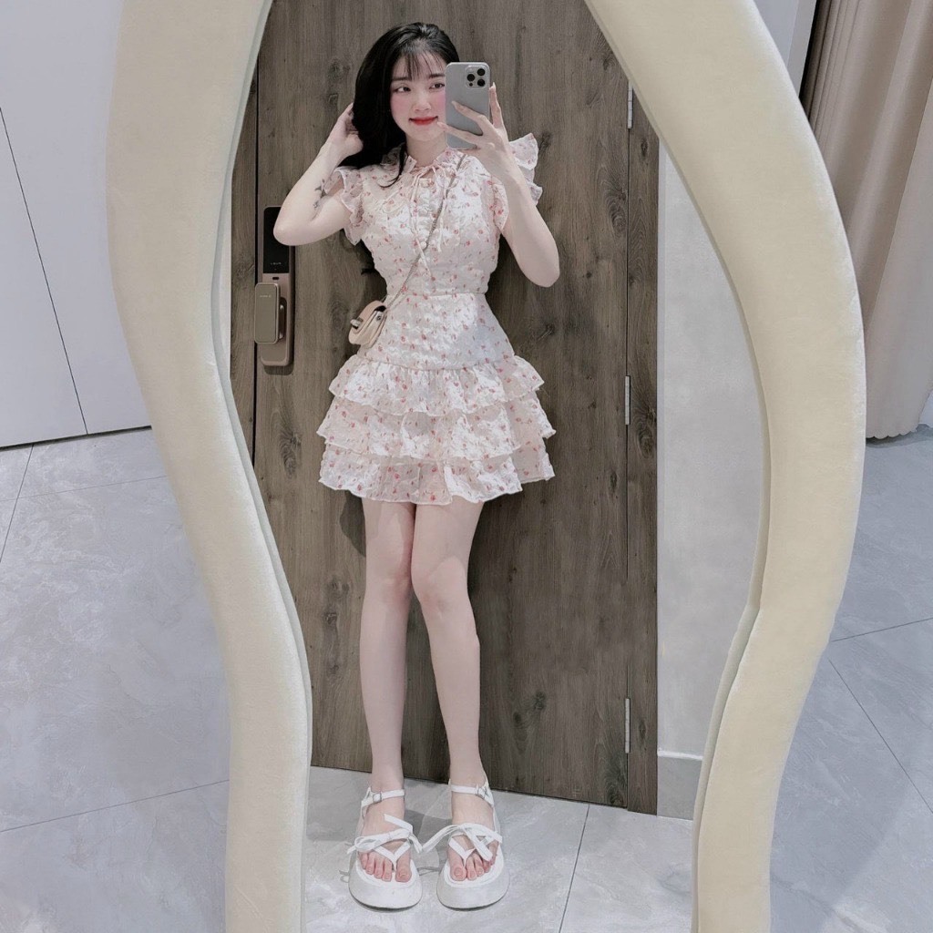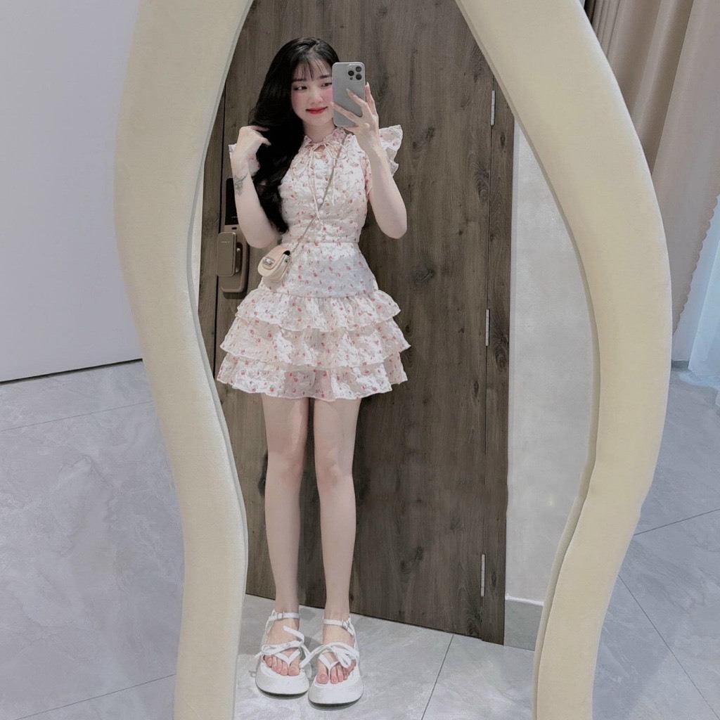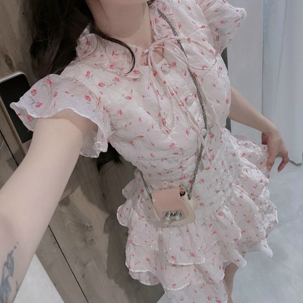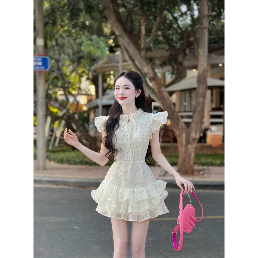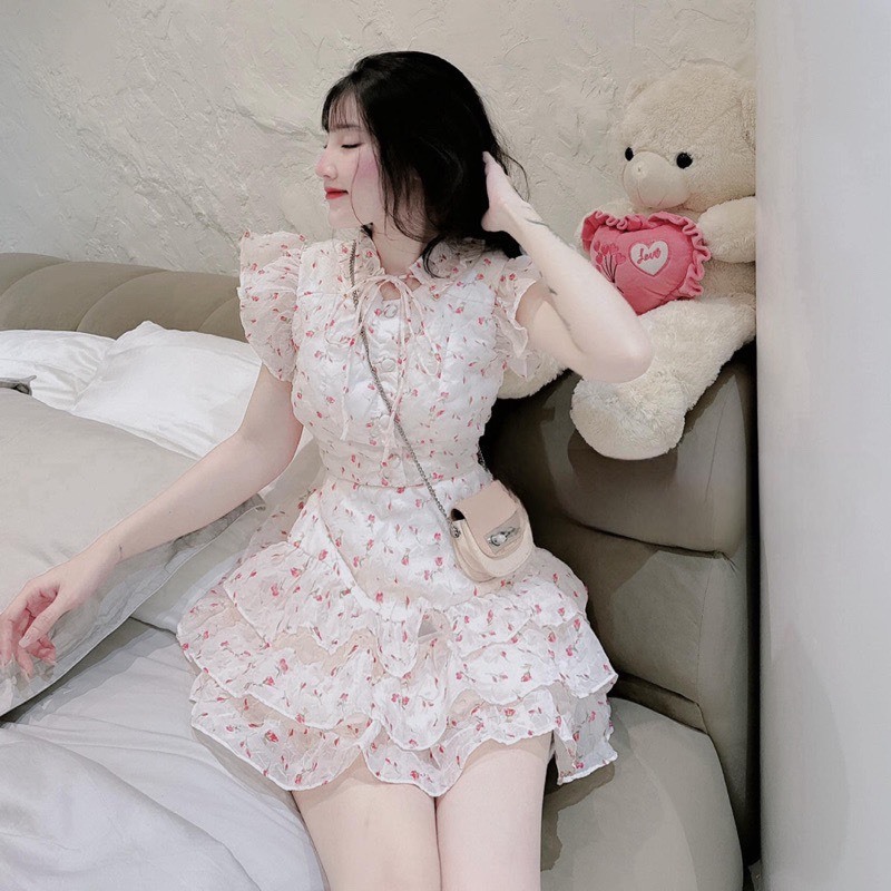 ชุดเด็กดอกไม้ปีกนางฟ้าดีไซน์ชั้นบานและผูกโบว์น่ารักเลดี้hv485