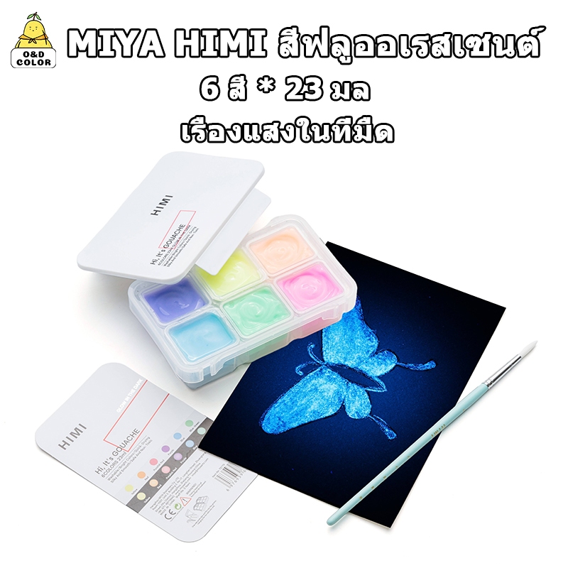 MIYA Gouache ผงน้ำ สีเรืองแสง สีกวอช Noctilucent 6 สี*23ml มันจะส่องแสงในที่มืด