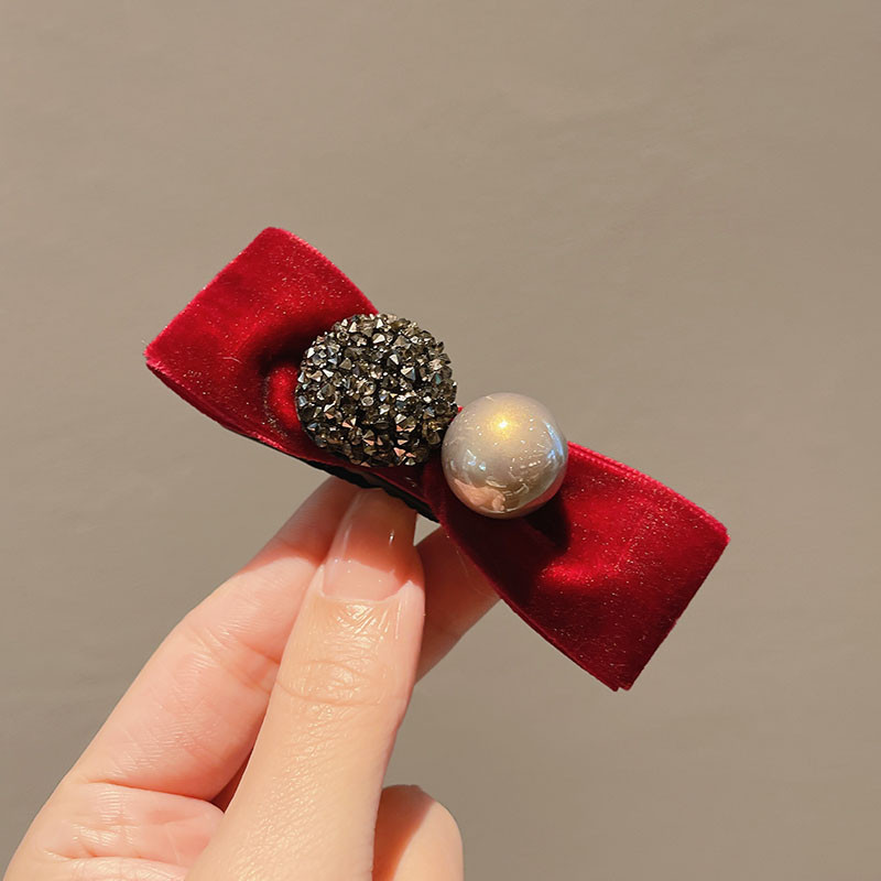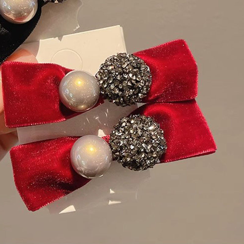 ฤดูใบไม้ร่วง/ฤดูหนาวโบว์ rhinestone กิ๊บมุกสําหรับผู้หญิง เครื่องประดับผมขอบด้านข้างหวานน่ารัก