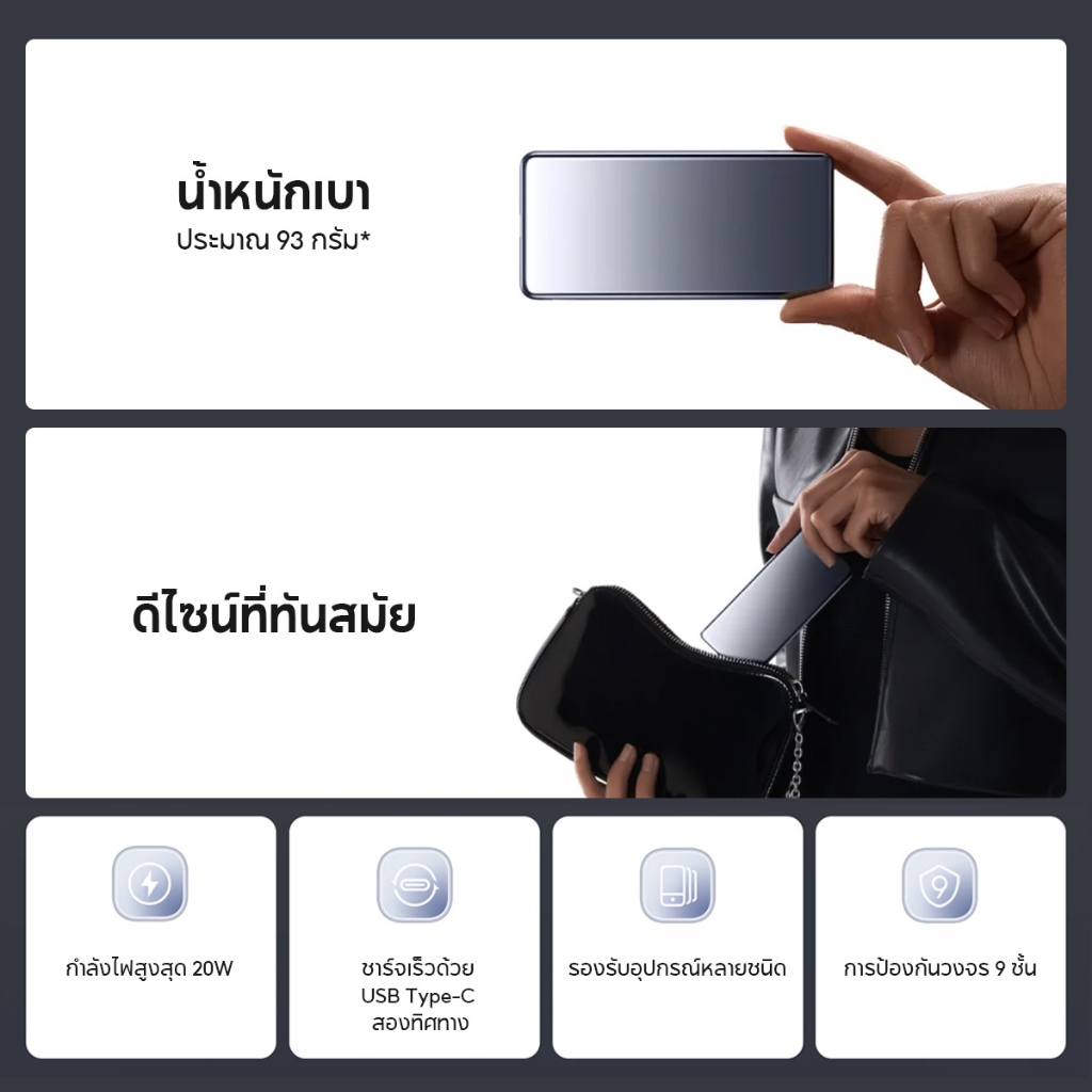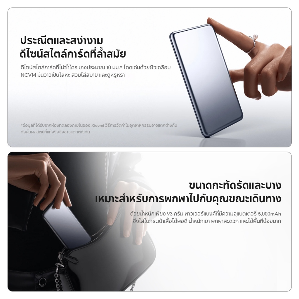[NEW] Xiaomi Ultra Slim Power Bank 5000mAh พาวเวอร์แบงค์ แบตสำรอง เอาท์พุตสูงสุด 20W ความจุสูง 5000mAh