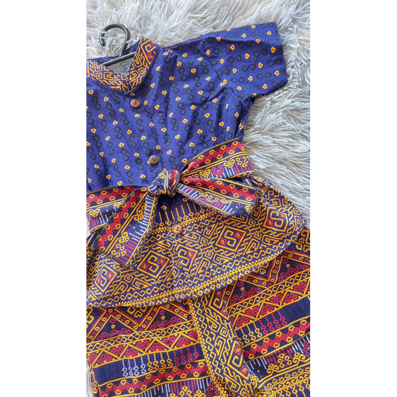 ?พร้อมส่ง?ชุดเด็กผ้าไทยรายตะขอสีน้ำเงินขับผิวดูผู้ดีมาก น่ารักสะดุดตาเนื้อผ้าฝ้ายพิมพ์ลายใส่สบายไม่ร้อนชุดเซ็ท3ชิ้น