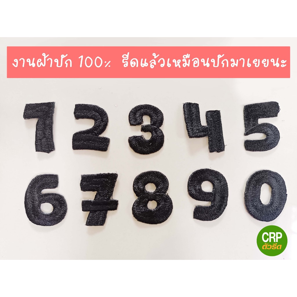 ตัวเลขรีดติดเสื้อ งานผ้าอัดกาวการ์ตูน สีดำงานผ้าปัก