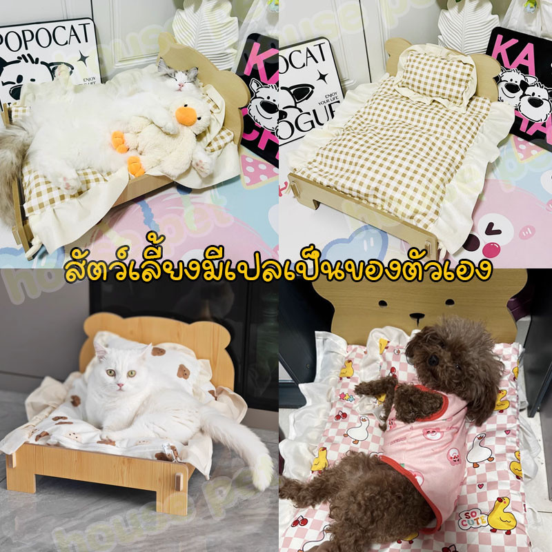 พร้อมจัดส่ง เตียงไม้สัตว์เลี้ยง ที่นอนแมว ที่นอนสุนัข เตที่นอนสัตว์เลี้ยง ป้องกันความชื้น