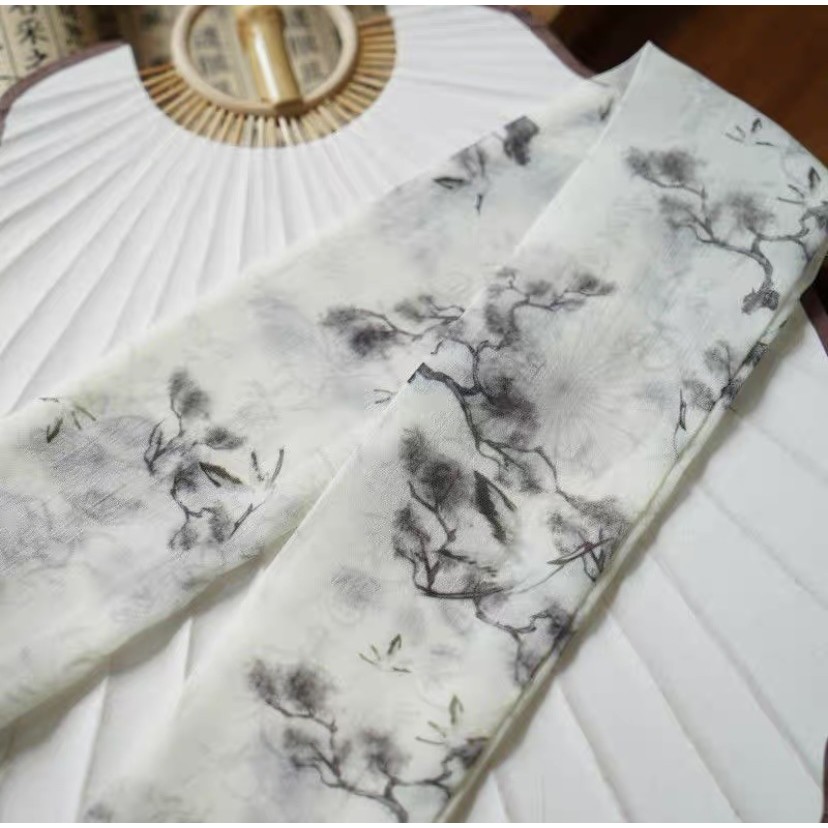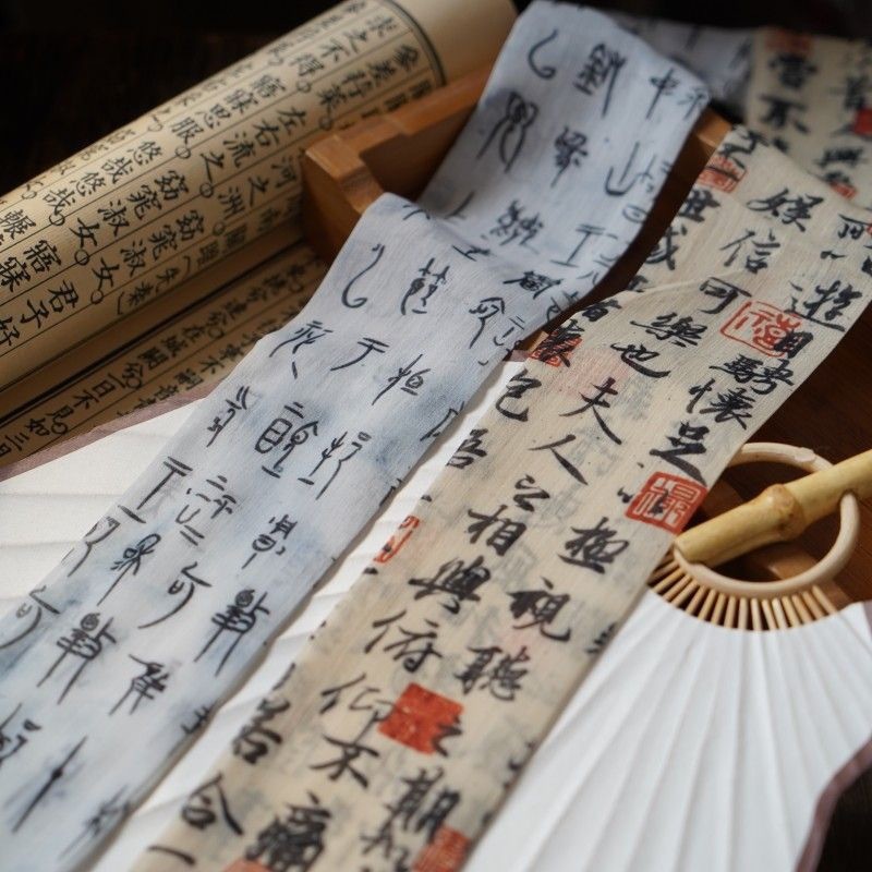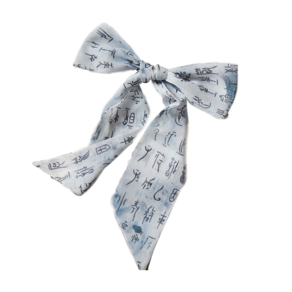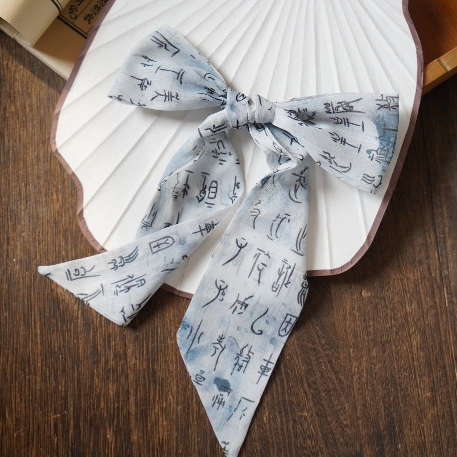 ที่คาดผมสไตล์โบราณ Lantingxu ผ้าพันคอไหม ริบบิ้นชิฟฟอน ที่คาดผม อุปกรณ์เสริมผมลายอักษรคลาสสิก โบว์ผูกผม