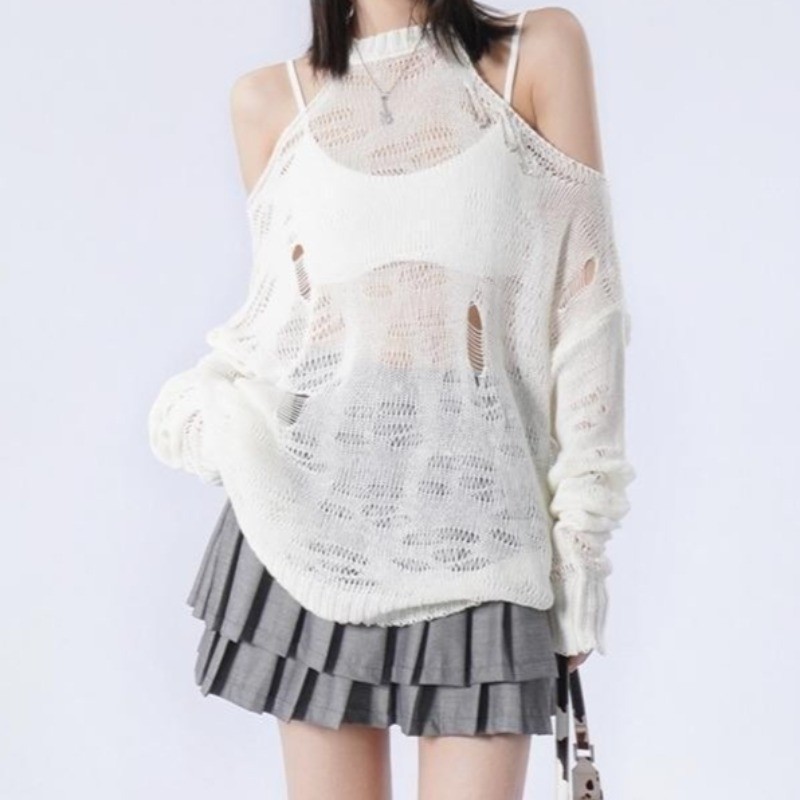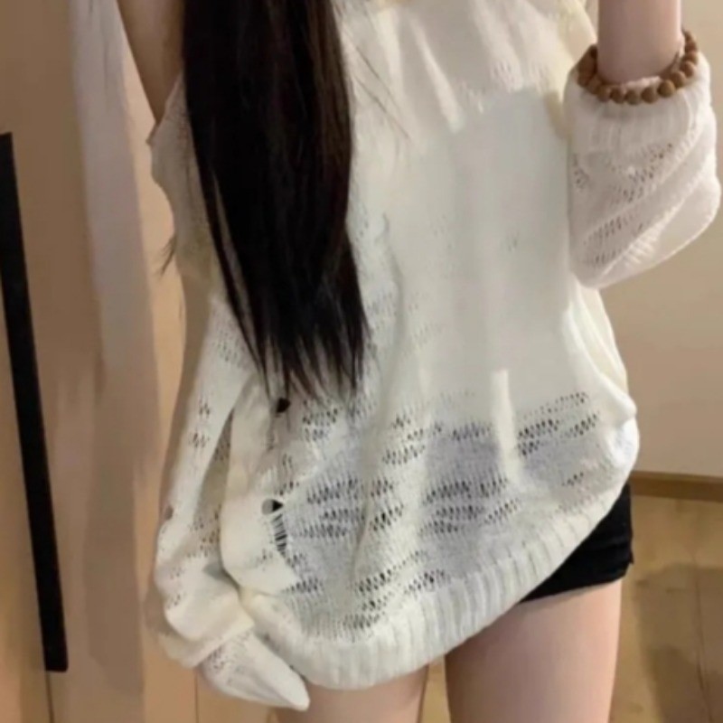 ฤดูใบไม้ผลิและฤดูใบไม้ร่วงสีทึบอเนกประสงค์ผู้หญิงปิดไหล่เสื้อกันหนาวเกาหลีลําลองสลิมมิ่งและป้องกันแสงแดดถักเสื้อสเวตเตอร์ถัก