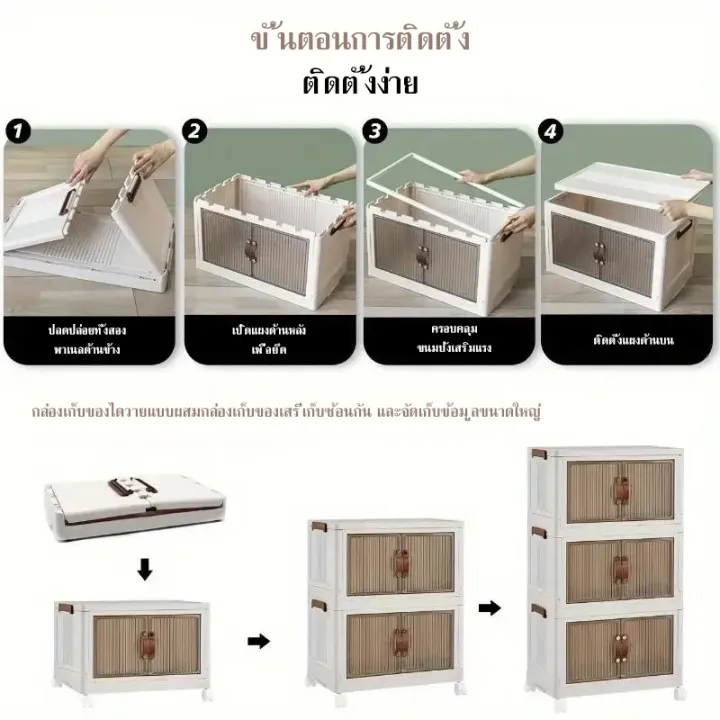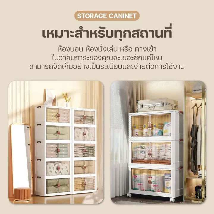 กล่องเก็บของเก็บของพับได้ 50cm ตู้เก็บของพับได้ 5/6ชั้นตู้ชั้นใส่ของ ตู้เก็บของมีล้อ ชั้นเก็บเสื้อผ้ากล่องใส่ตู้เสื้อผ้า