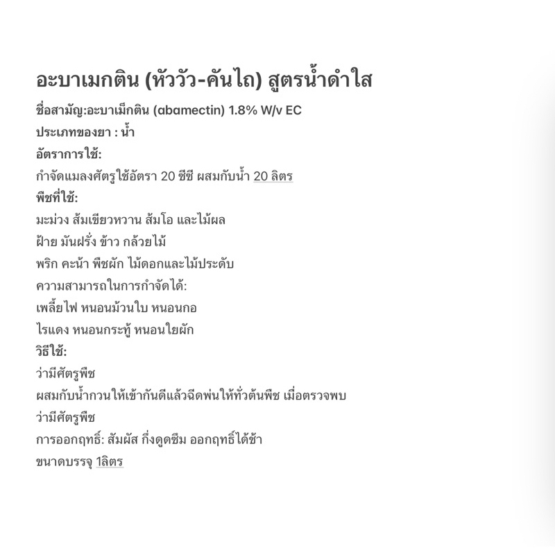 ชื่อสามัญ:อะบาเม็กติน (abamectin) 1.8% W/v EC