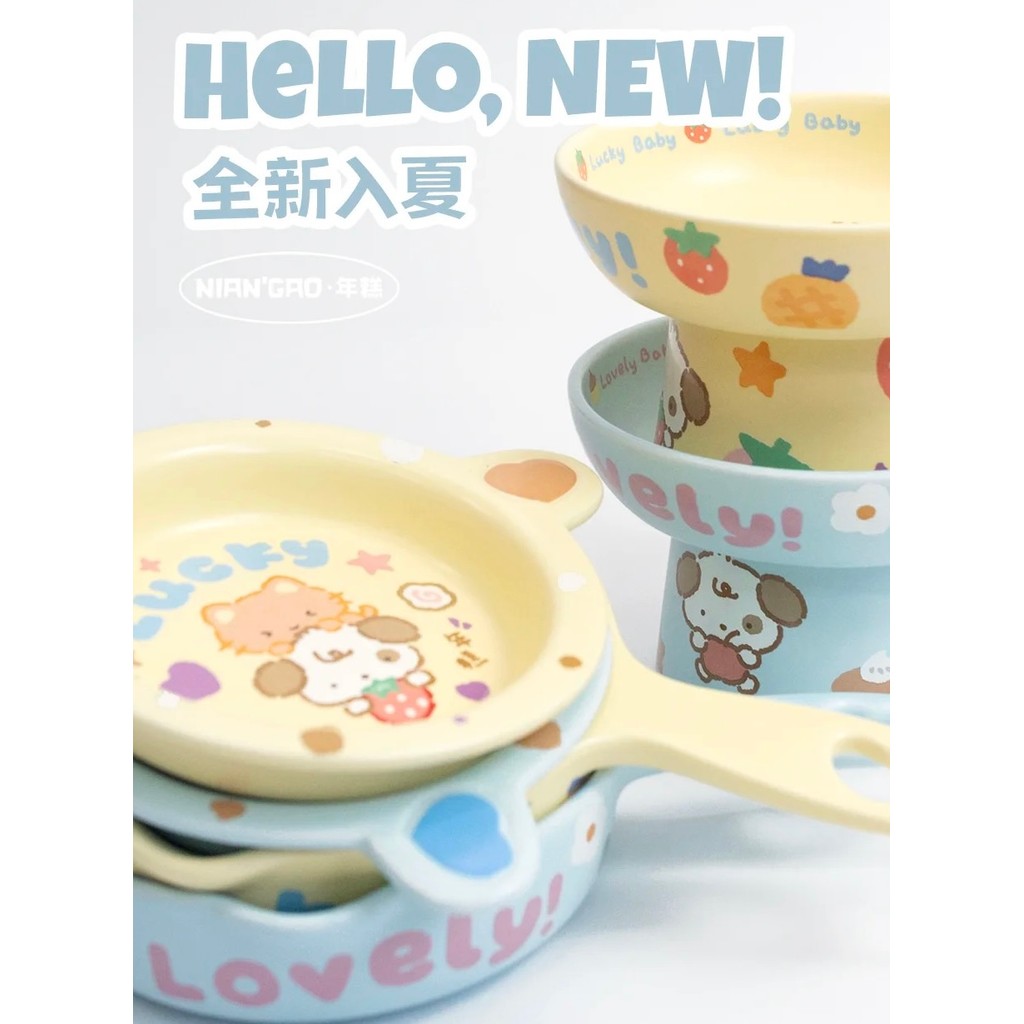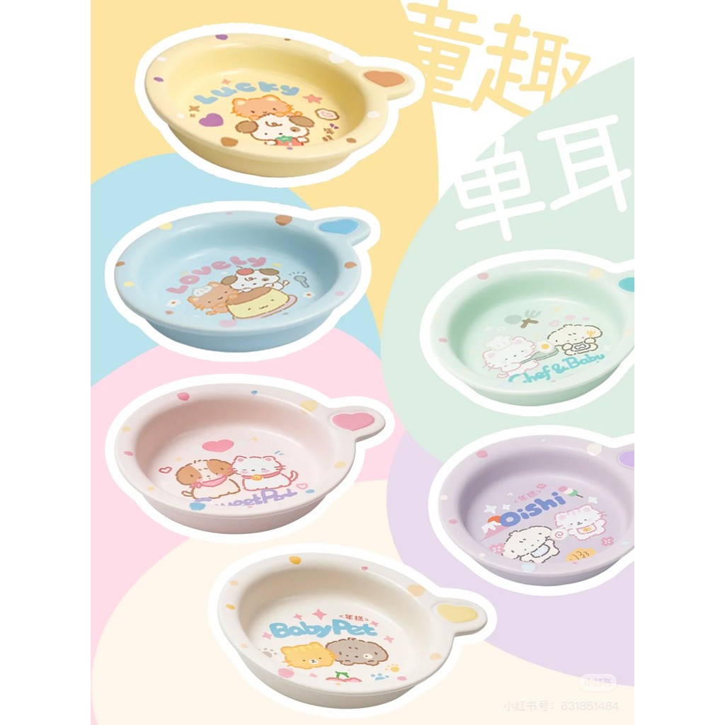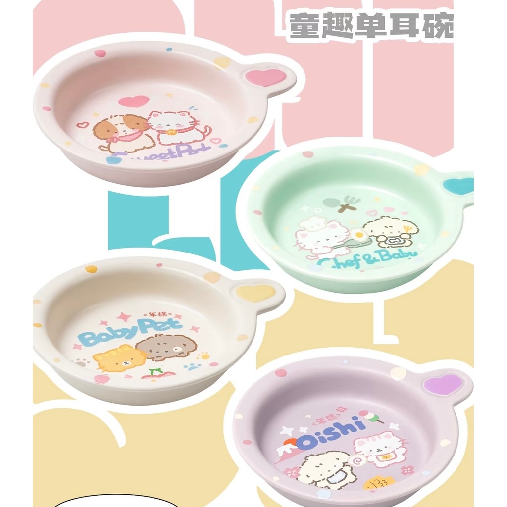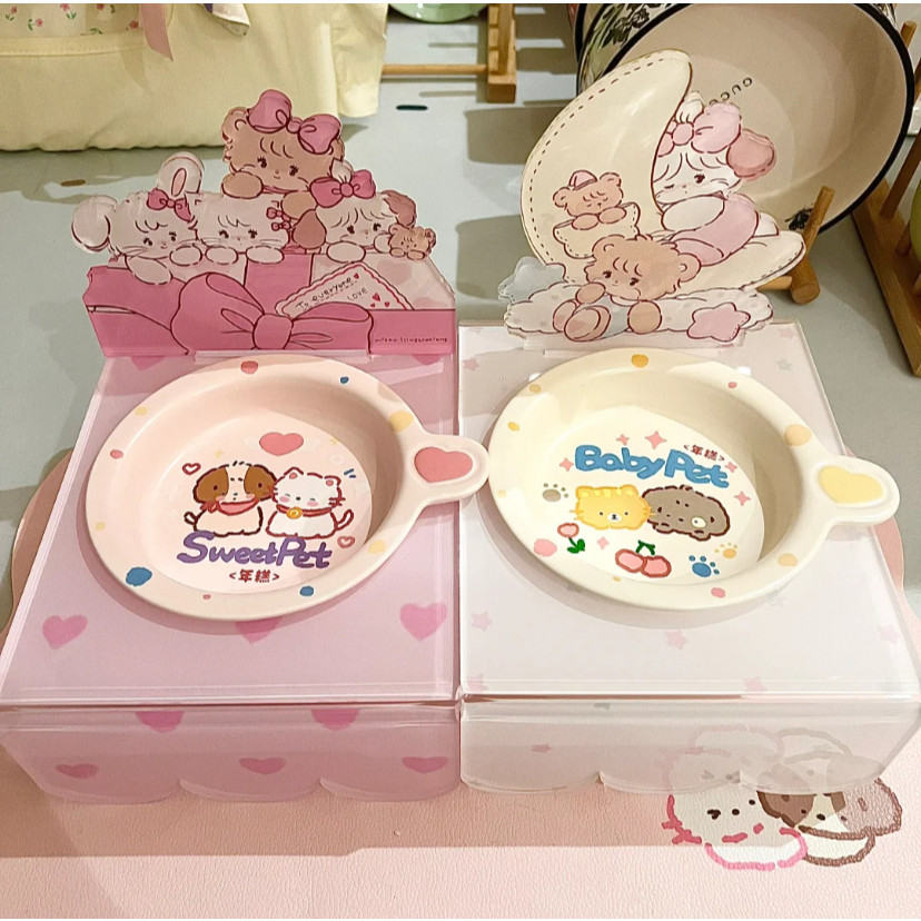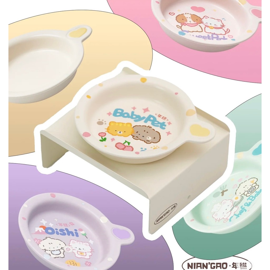 ?ชามเซรามิกแบบสูง+แบน ดีไซน์โต๊ะโมจิ ?| ปากกว้างโค้งมน น้ำหนักเบา สีด้าน สำหรับแมว-สุนัข