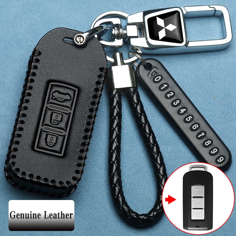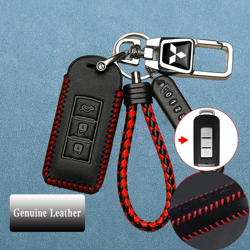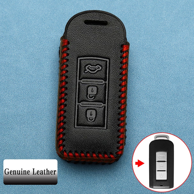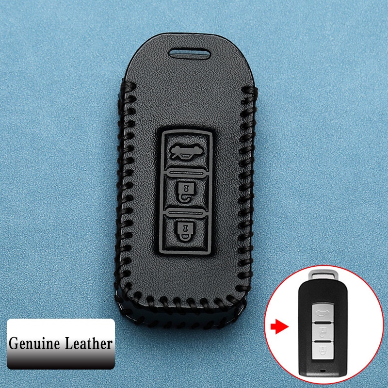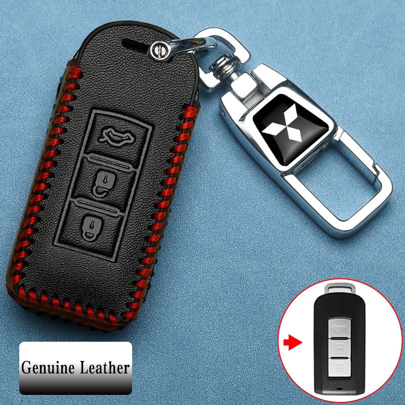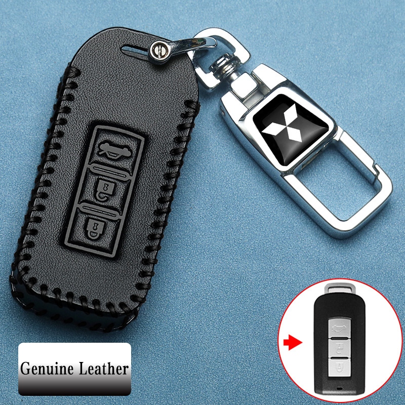Mitsubishi 3 ปุ่มหนังแท้รถ Remote Key Case เหมาะสําหรับ Mitsubishi Pajero/Triton/Mirage/Attrage/ASX/outlander ฝาครอบกุญแจพวงกุญแจ