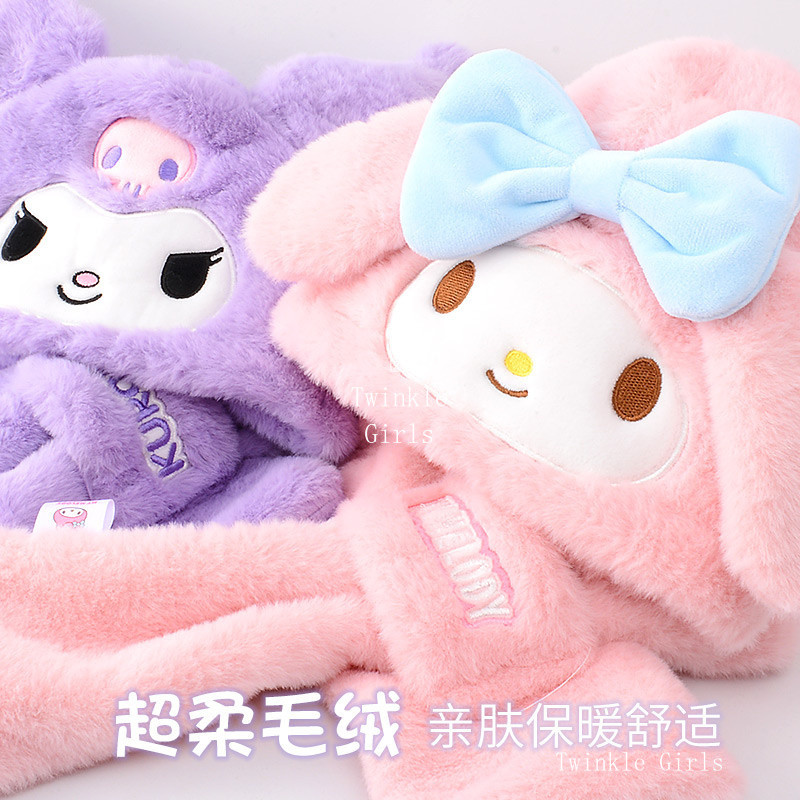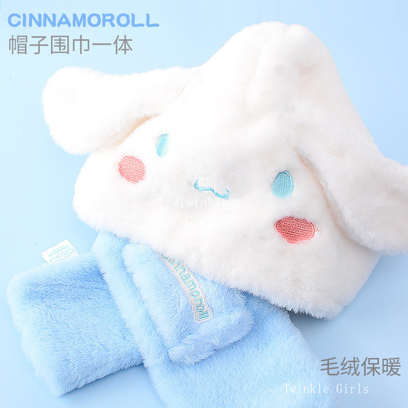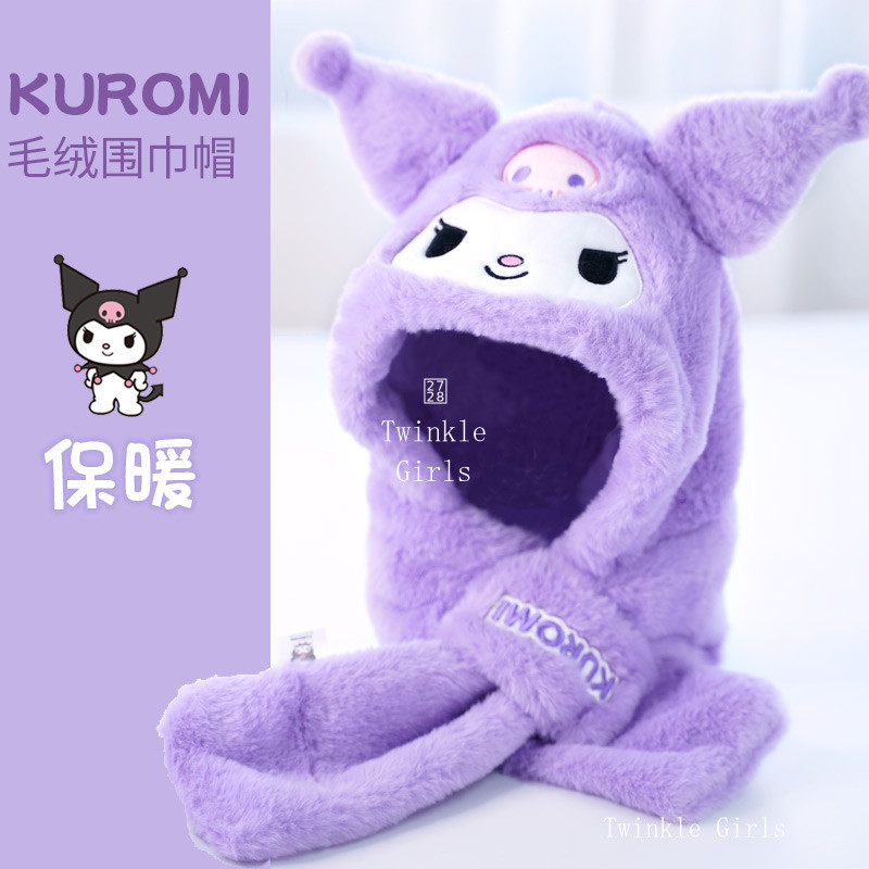 Kuromi Cinnamoroll หมวกเด็กผ้าพันคอหมวกกันหนาวแบบชิ้นเดียวหมวกกันหนาวหมวกกันหนาวเด็กผู้หญิงหมวกกันหนาวผ้าพันคอ