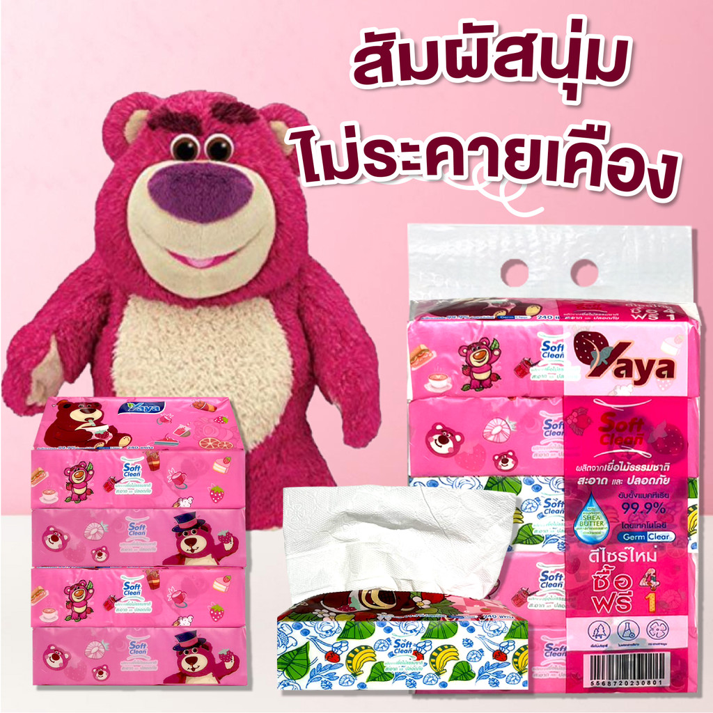 1หิ้ว/5ห่อ ทิชชู่ ทำความสะอาดกระดาษ ลายหมีน้อย กระดาษทิชชู่ เพิ่มความหนา 3 ชั้น เหนียว ไม่ขาดง่าย ไร้ฝุ่น 240แผ่น