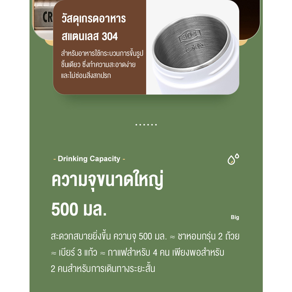 Pippi กระติกน้ำ 500ml กาต้มน้ำไฟฟ้า พกพา มีจอแสดง ป้องลวกมือ ระบบทำความร้อนอัตโนมัติ แก้วเก็บเย็น
