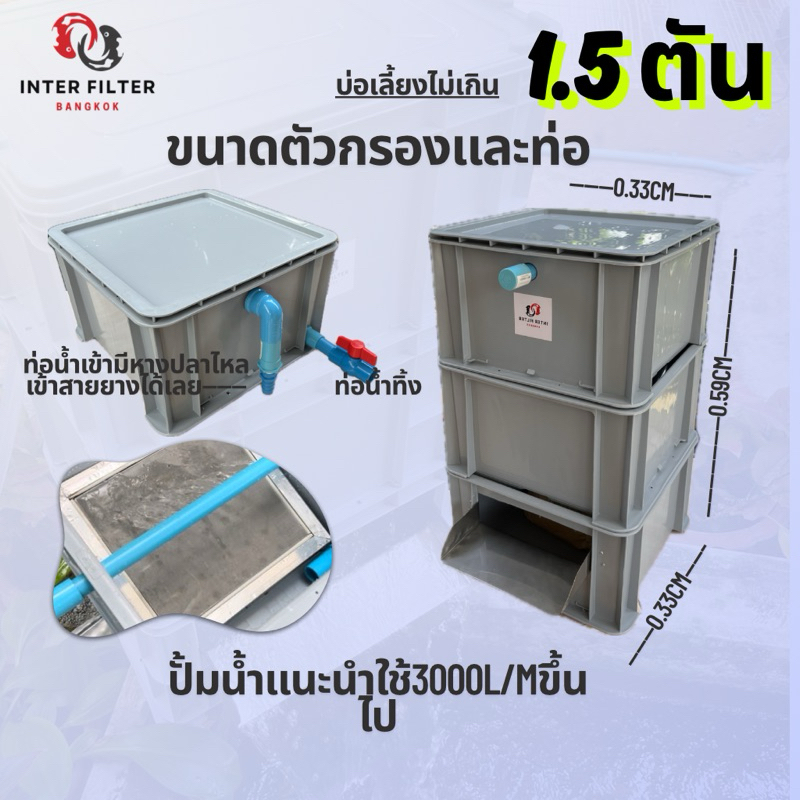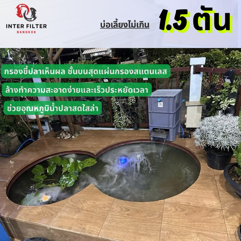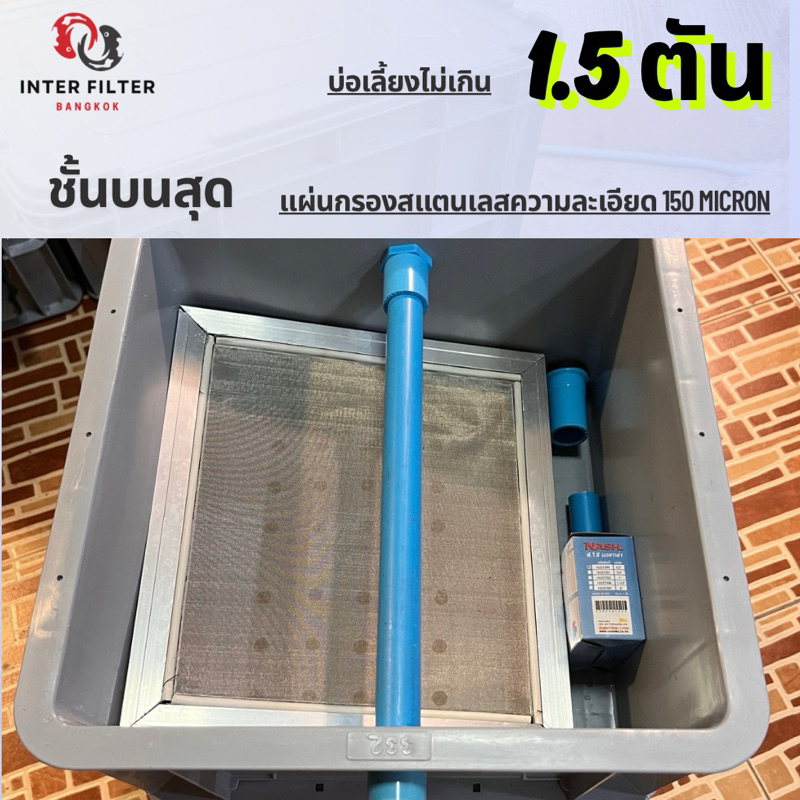 ถังกรองคอนโดบ่อปลา ขนาดบ่อไม่เกิน 1.5 ตัน แผ่นกรองสแตนเลสในตัว