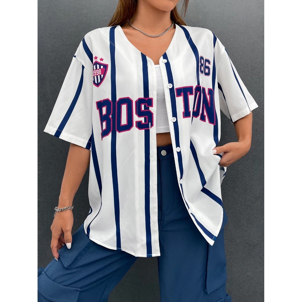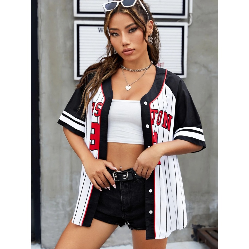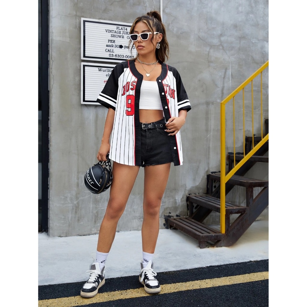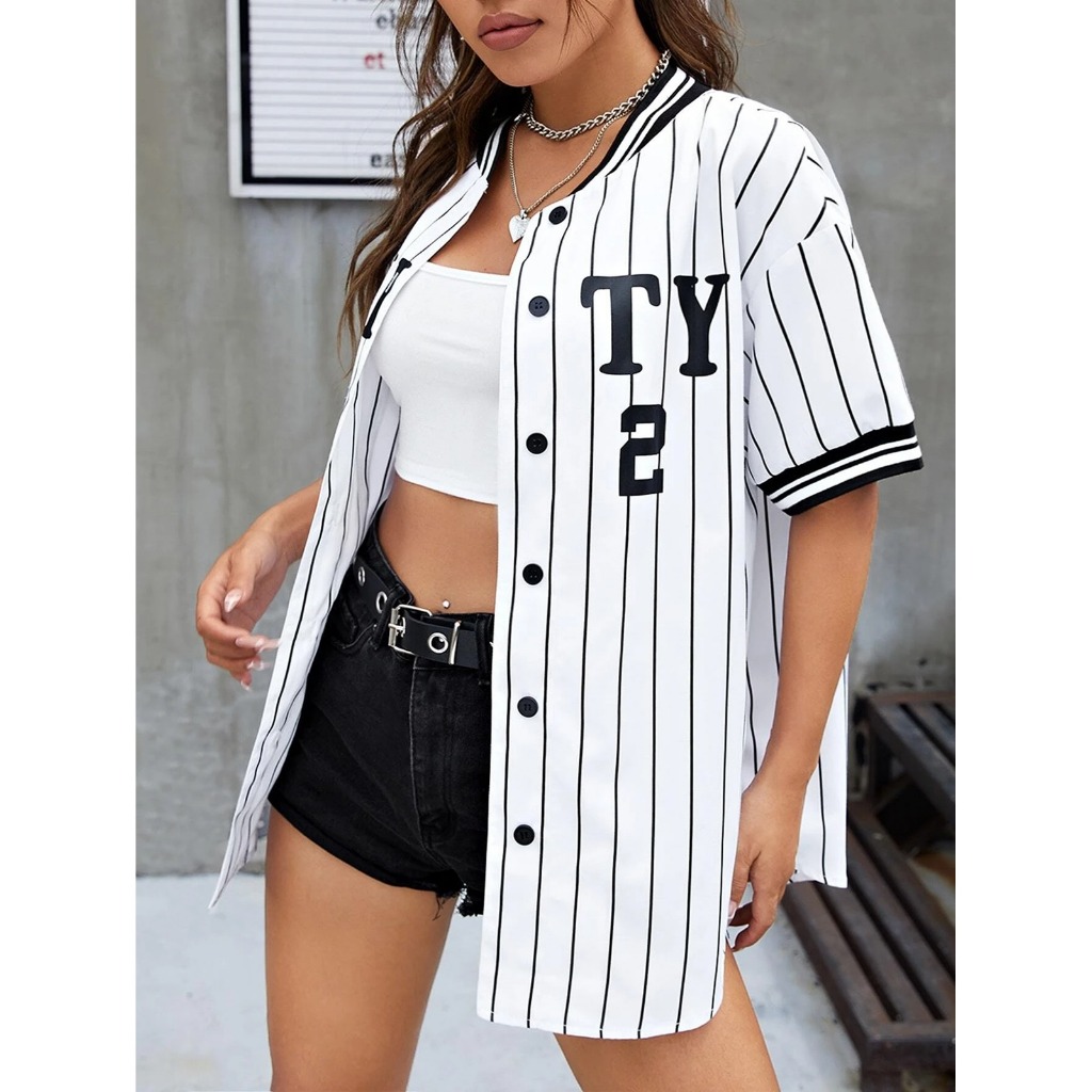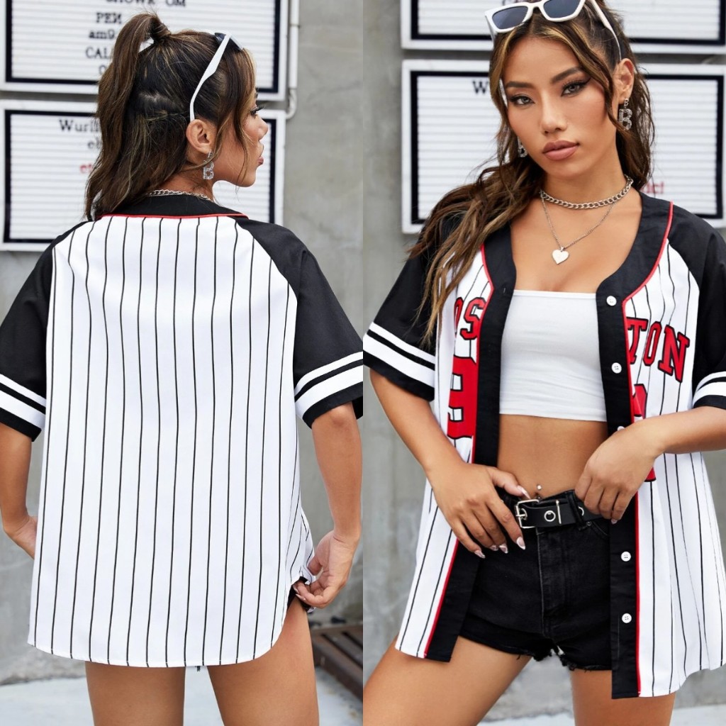 Unsixe เสื้อเบสบอลแขนสั้น – เกาหลี BLOCKCORE สไตล์พิมพ์ Stickball เสื้อเบลาส์ผู้หญิงหลวม Oversize เสื้อยืดเสื้อสเวตเตอร์ถักสําหรับผู้ชายและผู้หญิง Hot Trend 2567
