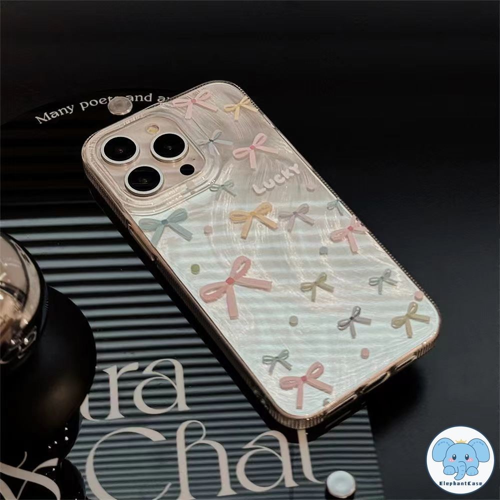 โบว์ไข่มุกสุดหรูขนนกเส้นด้ายป้องกันการกระแทก iPhone 11 16 12 15 14 13 Pro Max 7Plus XR 8 15 7 14 16 Plus X SE XS Max