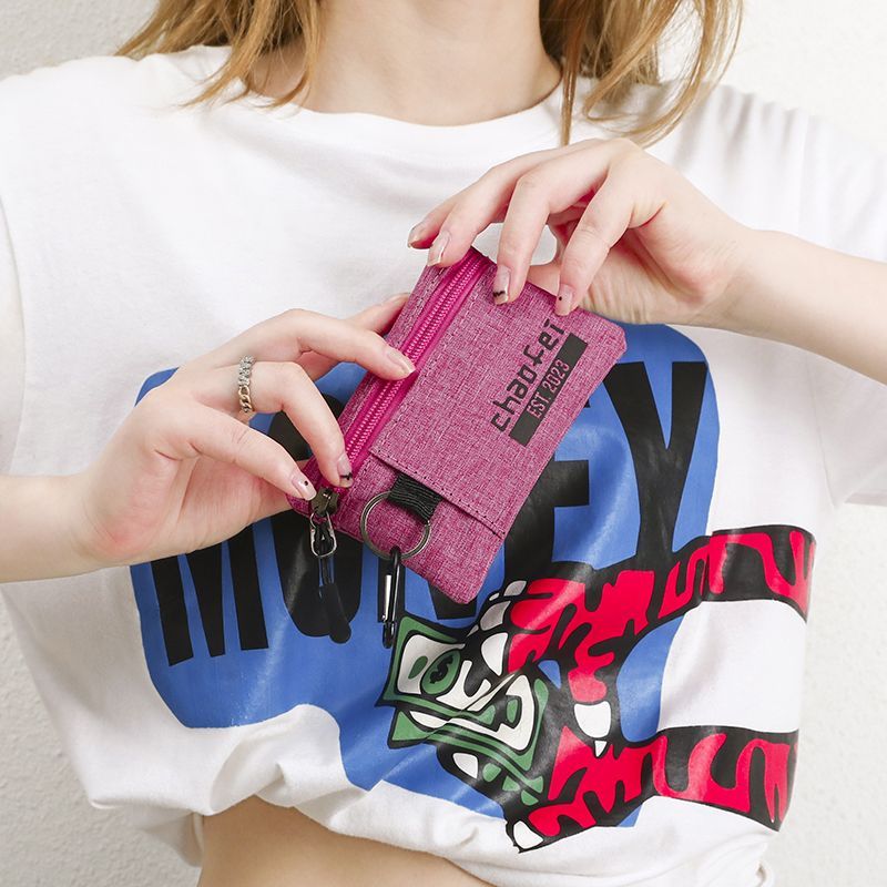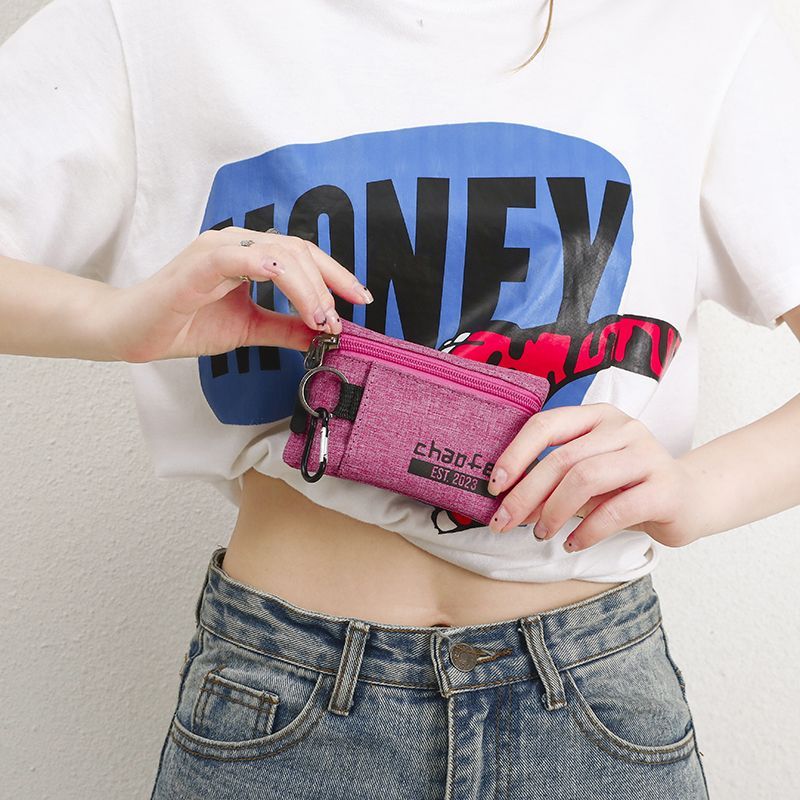 กระเป๋าใส่เหรียญนักเรียนแบบแขวนได้ Carabiner ผ้า Oxford กระเป๋าผ้าใบกระเป๋าใส่เหรียญที่ใส่บัตรประชาชนกันน้ำในตัว
