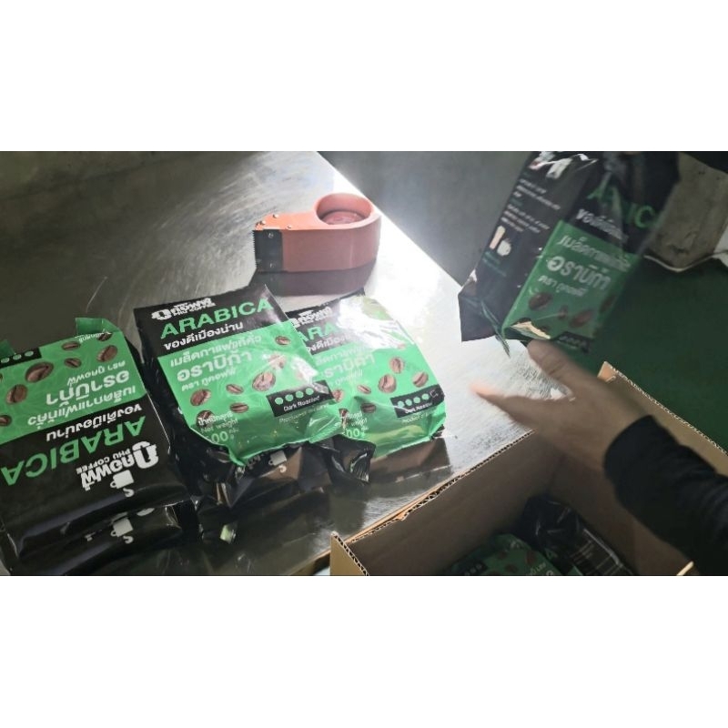 อราบิก้าคั่วเข้มแพค 500 กรัม ขายยกลังสำหรับผู้ประกอบการ ราคาถูกสุดๆ ลังละ 1,950 บ. (ราคา 195./ถุง)