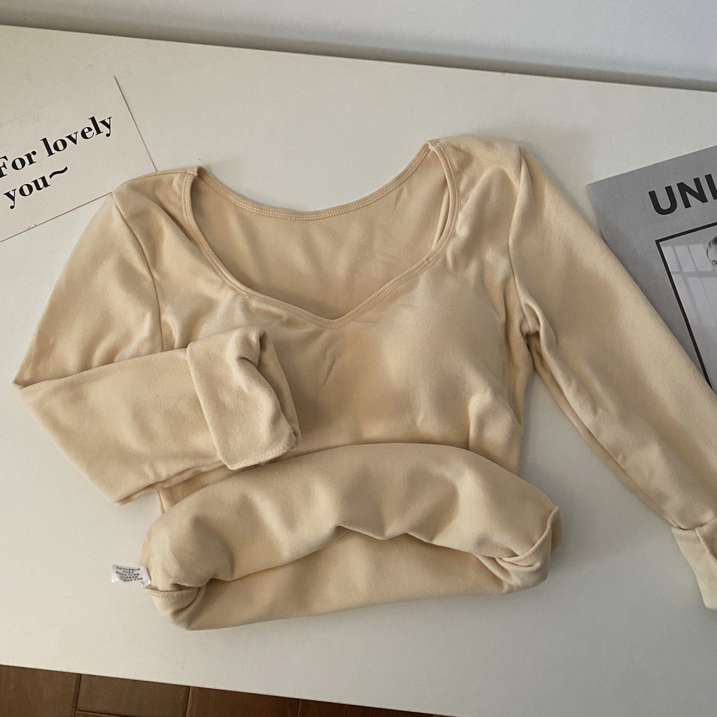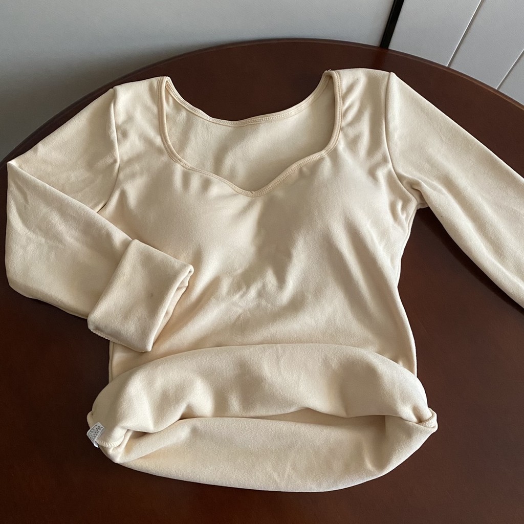ฮีทเทค เสื้อฮีทเทค ชุดชั้นในระบายความร้อนสำหรับฤดูใบไม้ร่วงและฤดูหนาวของผู้หญิงเสื้อตัวในเพิ่มความหนาบุขนเพิ่มความร้อนกับแผ่นหน้าอกเสื้อแขนยาว