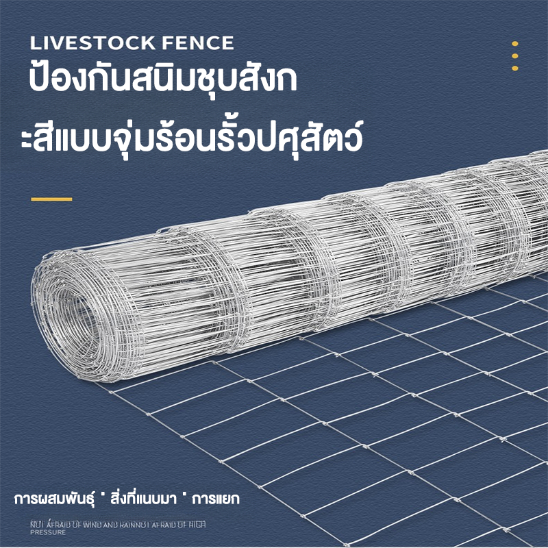 รั้วถักปม/รั้วตาข่ายแรงดึง (ยาว 30เมตร / 50เมตร) ลวดตาข่ายถักปม ลวดเหล็กล้อมรั้ว รั้วล้อมไร่สวน รั้วล้อมคอกสัตว์ วัว แพะ
