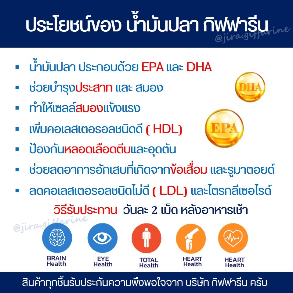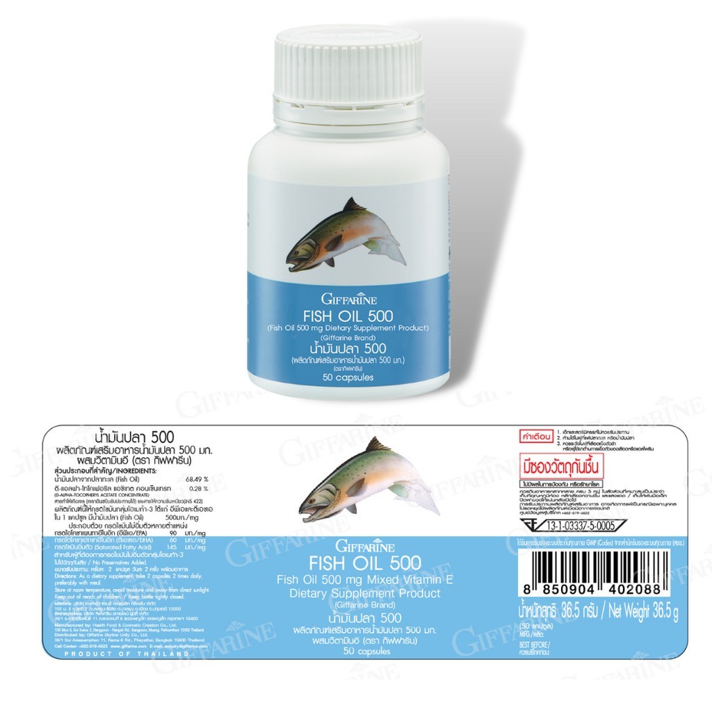 น้ำมันปลา กิฟฟารีน GIFFARINE Fish oil (ขนาด 500 มก.บรรจุ 50 แคปซูล)