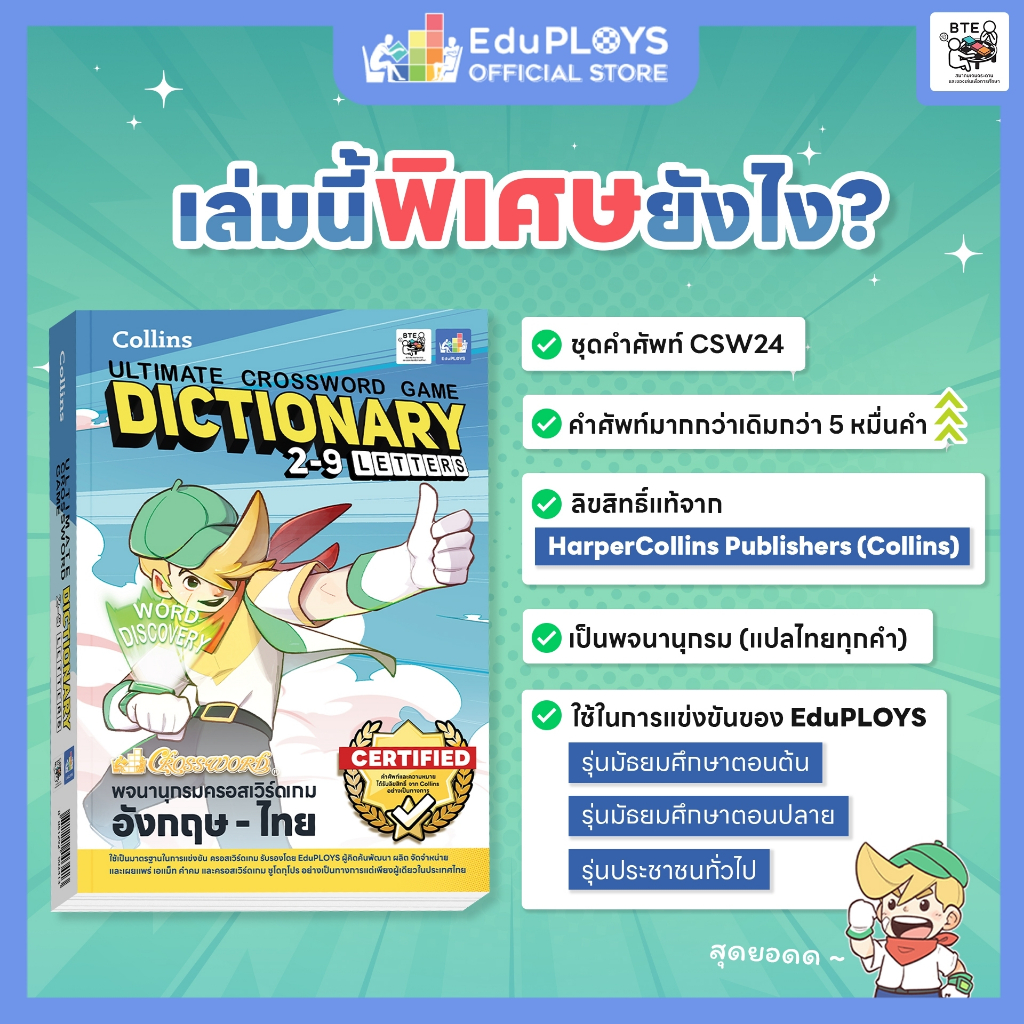 หนังสือพจนานุกรมครอสเวิร์ดเกม อังกฤษ-ไทย 2-9 ตัวอักษร Collins Ultimate Crossword Game Dictionary 2-9 Letters by EduPLOYS