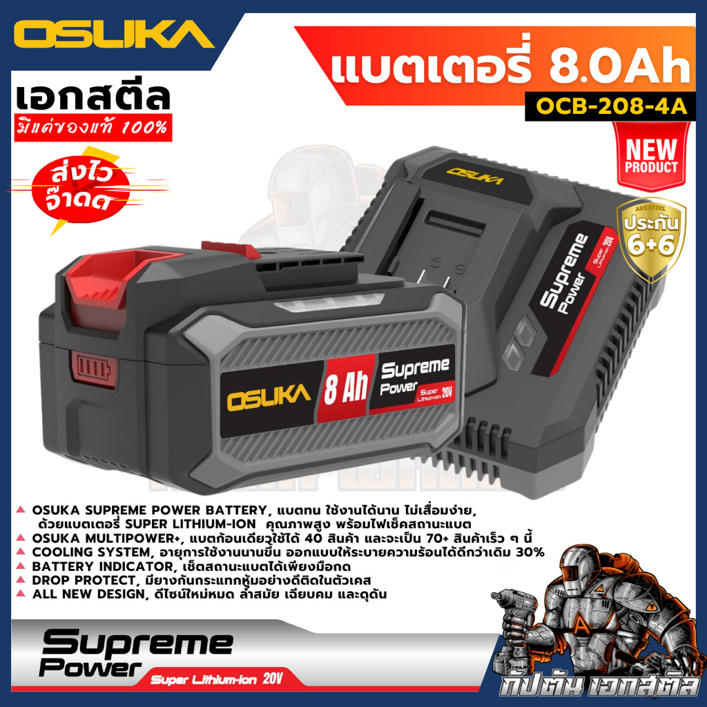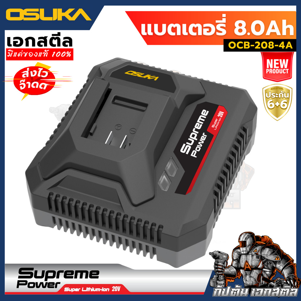 (ใหม่ ถูกสุด) OSUKA แบตเตอรี่ 8.0Ah + แท่นชาร์จไว 4.0Ah Supreme Power OCB-208-4A ประกัน6+6