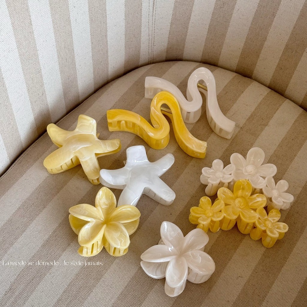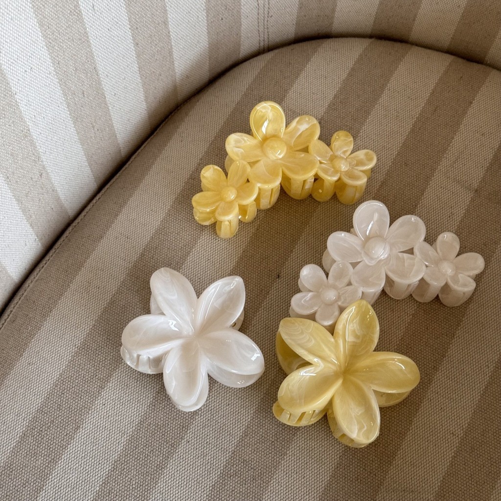 กิ๊บติดผมดอกไม้ฤดูร้อนสีขาวสีเหลืองกรงเล็บคลิปสําหรับผู้หญิง