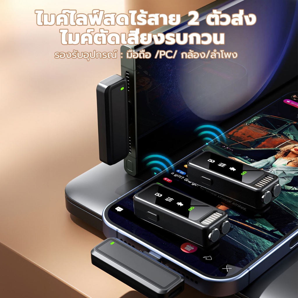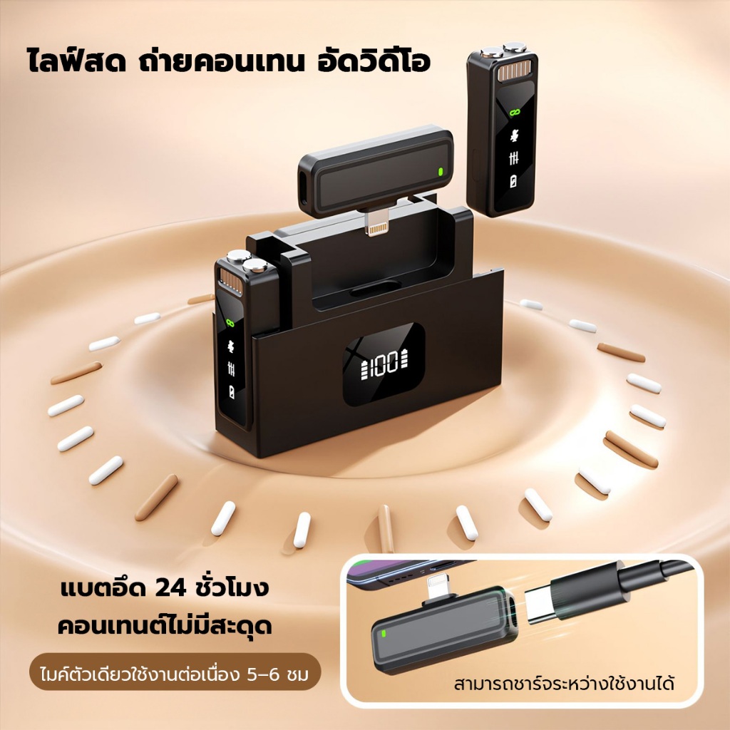 ✨ ไมค์คลิป LM24|2 ตัวรับสัญญาณ + ลดเสียงรบกวน|ใช้งานได้ทั้ง Type-C & Lightning |แถมถุงเก็บพรีเมียม✨