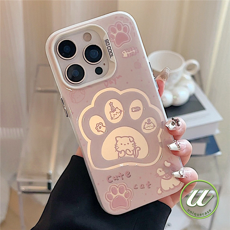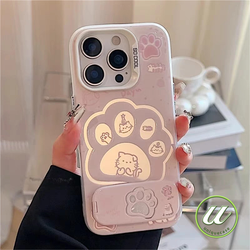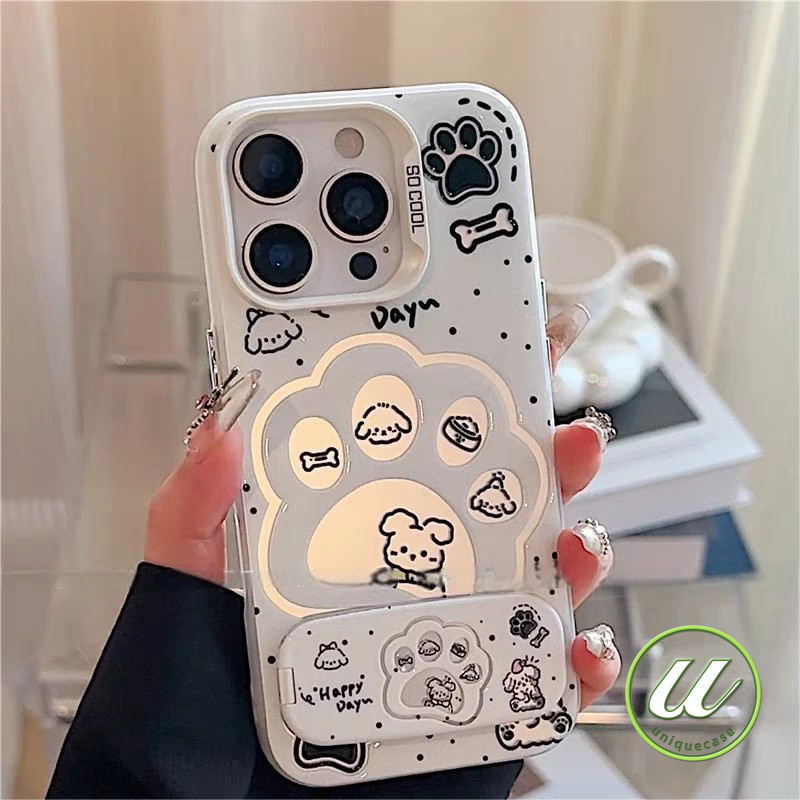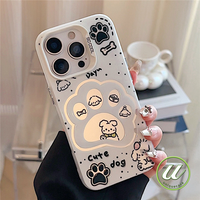 คู่รักการ์ตูนอุ้งเท้าลูกสุนัขลูกแมวโลหะเลนส์ เคส IPhone 12Pro XR 13 12 16 14 15 11 Pro Max 7Plus X 8 7 15 16 Plus XS Max