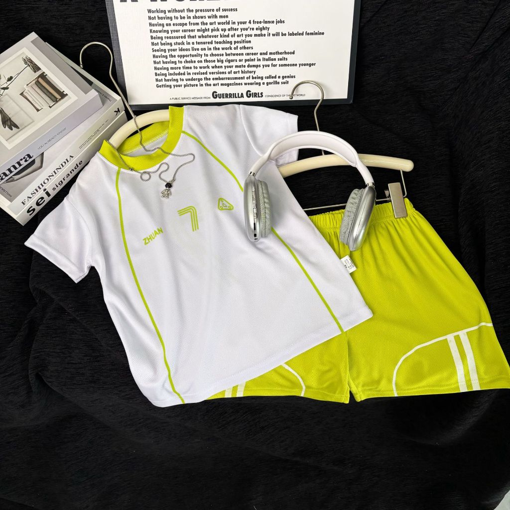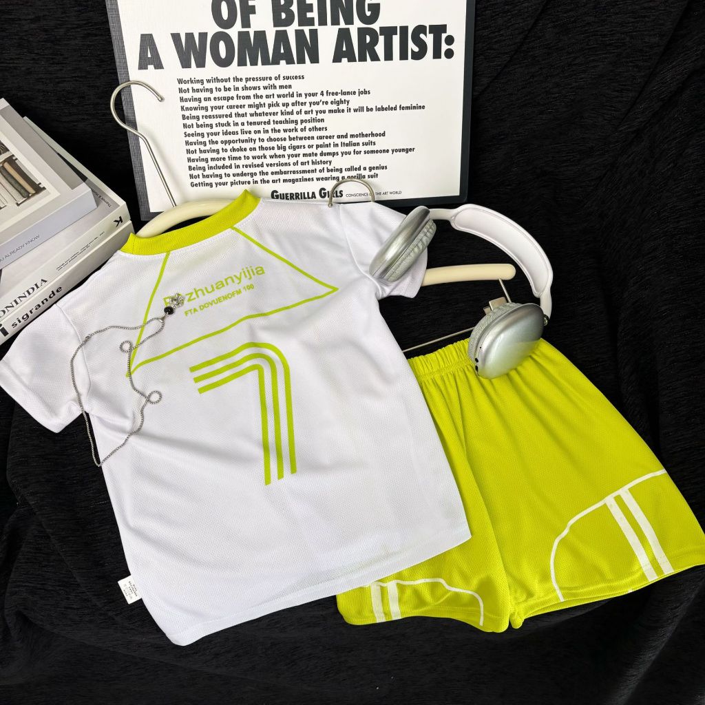 ชุดกีฬาลำลองเด็กผู้ชาย ชุดเสื้อแขนสั้นเด็ก สีสดใส ผ้านิ่ม ใส่สบาย ระบายอากาศดี พร้อมส่ง