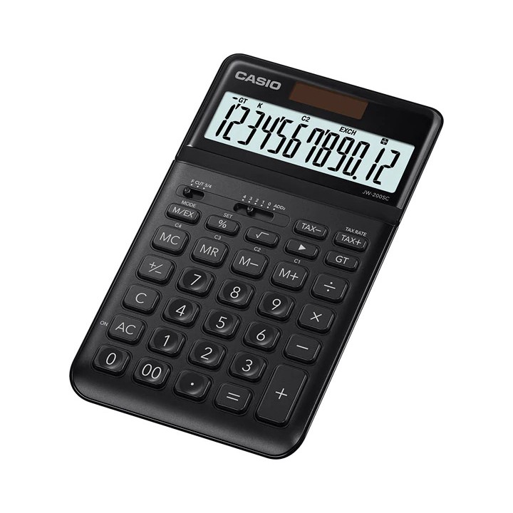 Casio Calculator เครื่องคิดเลข คาสิโอ รุ่น JW-200SC-BK แบบสีสัน ปรับหน้าจอได้ 12 หลัก สีดำ