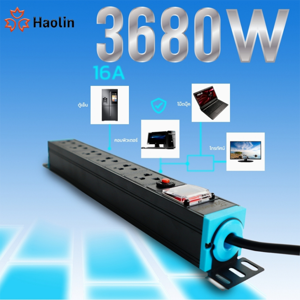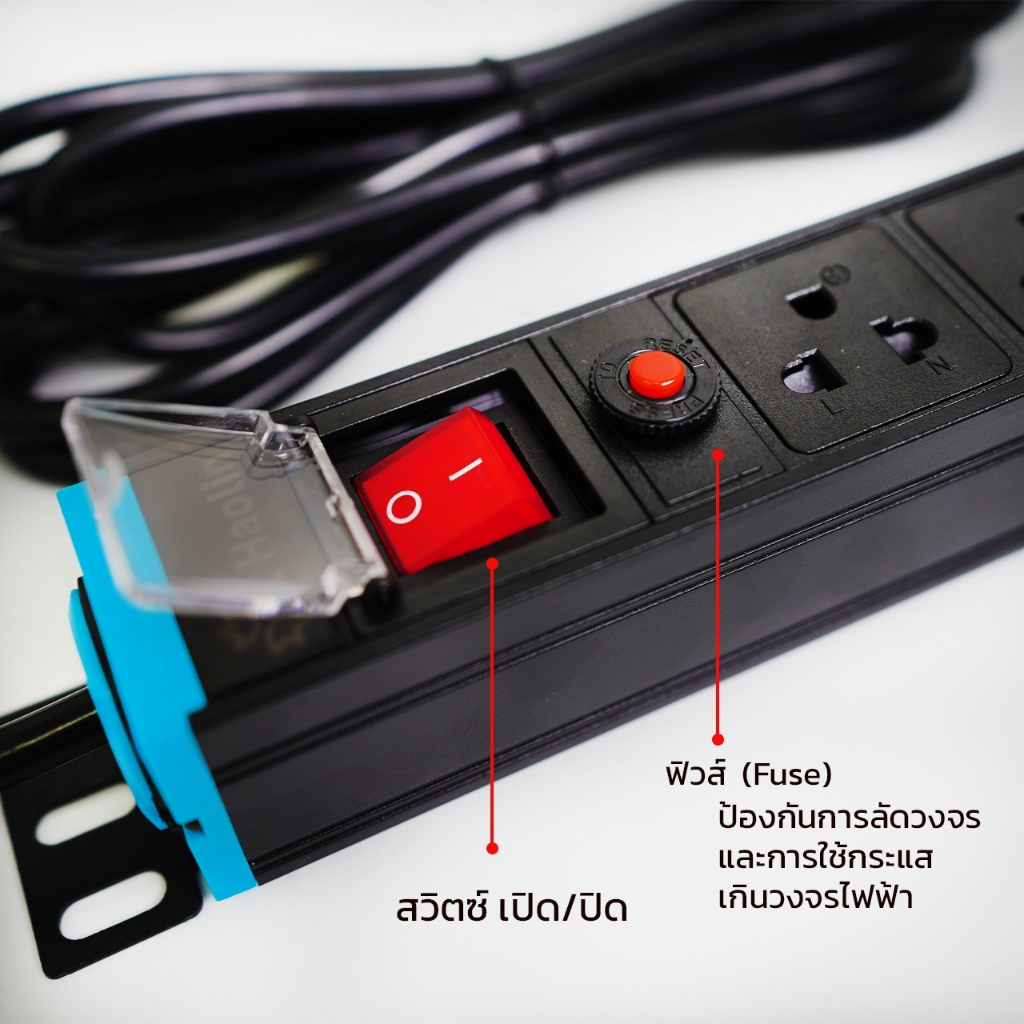 รางปลั๊กไฟPDU รุ่น12ช่อง มีสวิตส์ ปลั๊กไฟกันกระชาก 3680W มี มอก.แท้ (พร้อมสายไฟ2-10เมตร)